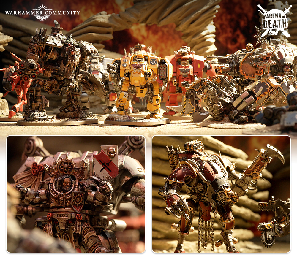 Ten thousand years after the Horus Heresy and mobs of walkers are battling each other in a new episode of Arena of Death. Nick, Si, and Josh are in command of a team of Imperial, Chaos, and xenos walkers respectively, pitting Dreadnoughts, Sentinels, Deff Dreads, Wraithlords, and more against each other in a brutal showdown. We can’t begin to imagine who will win, but we know it’s going to be carnage.