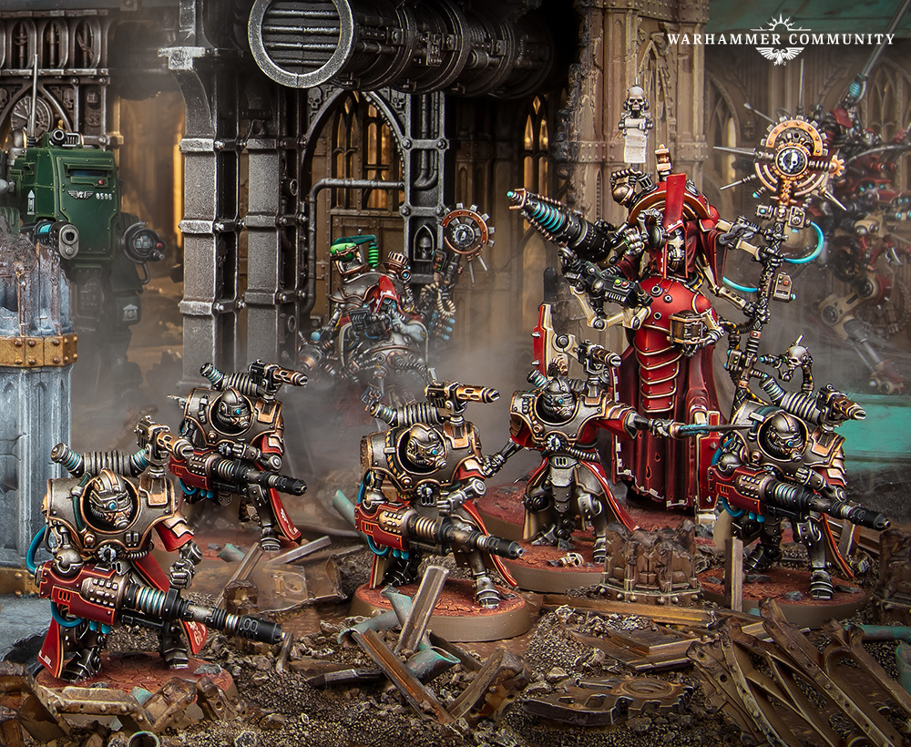 While many of her peers find Thulia Ghuld distasteful company at best, she is beloved by the Skitarii, who view her as the Vox Dei – the living emitter of the Machine God’s word. They adore her for her unceasing pursuit of victory, often seized by unstoppable armoured legions crowned by heavy Hastarii infantry.