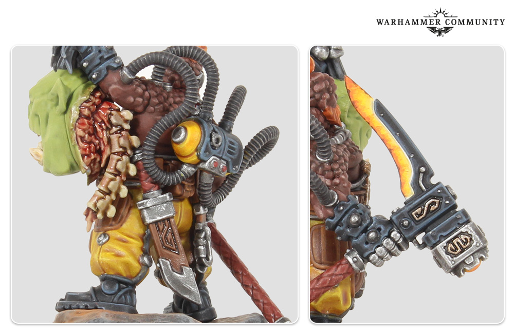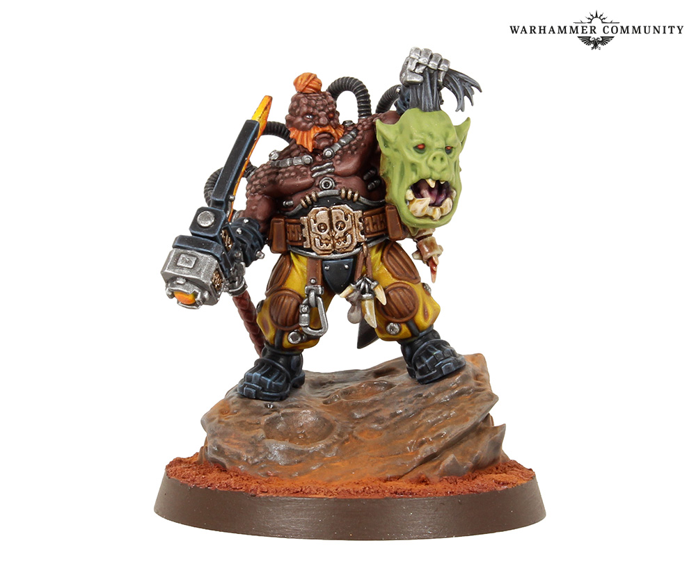 I picked this craggy little guy up as my first attempt at a Leagues of Votann miniature, as I like to try out an individual character when deciding if I'll enjoy painting the army as a whole. I was inspired to do the Kronus Hegemony colour scheme as my friend and I were in a doubles tournament at Warhammer World recently and one of our games was against a League of Votann–Kroot alliance, and the yellow really stood out.