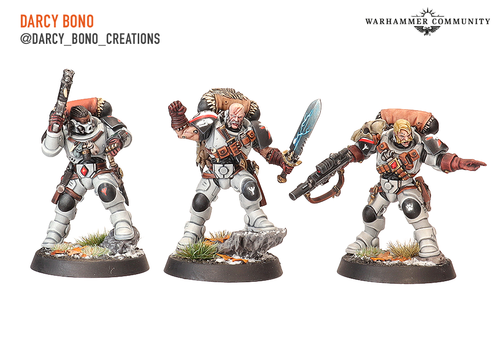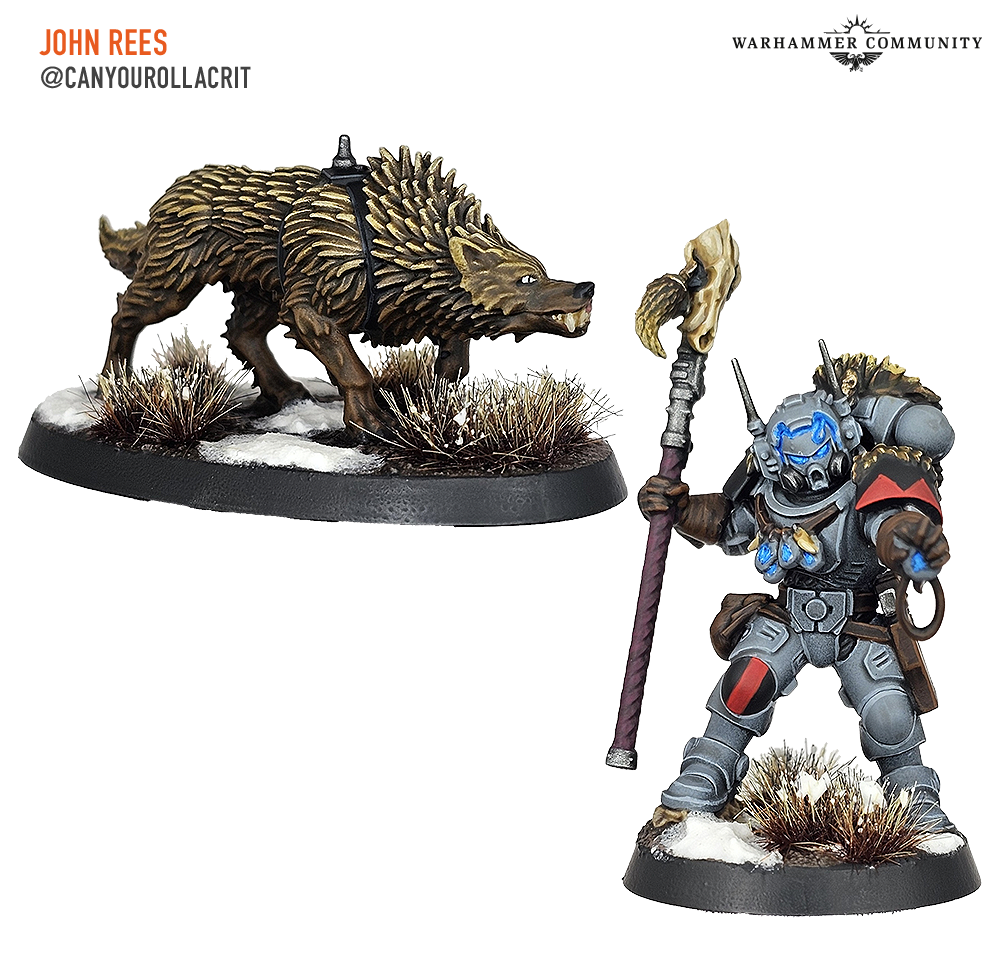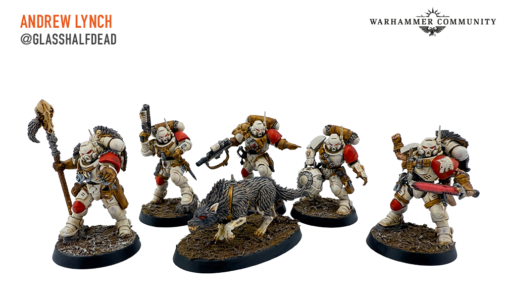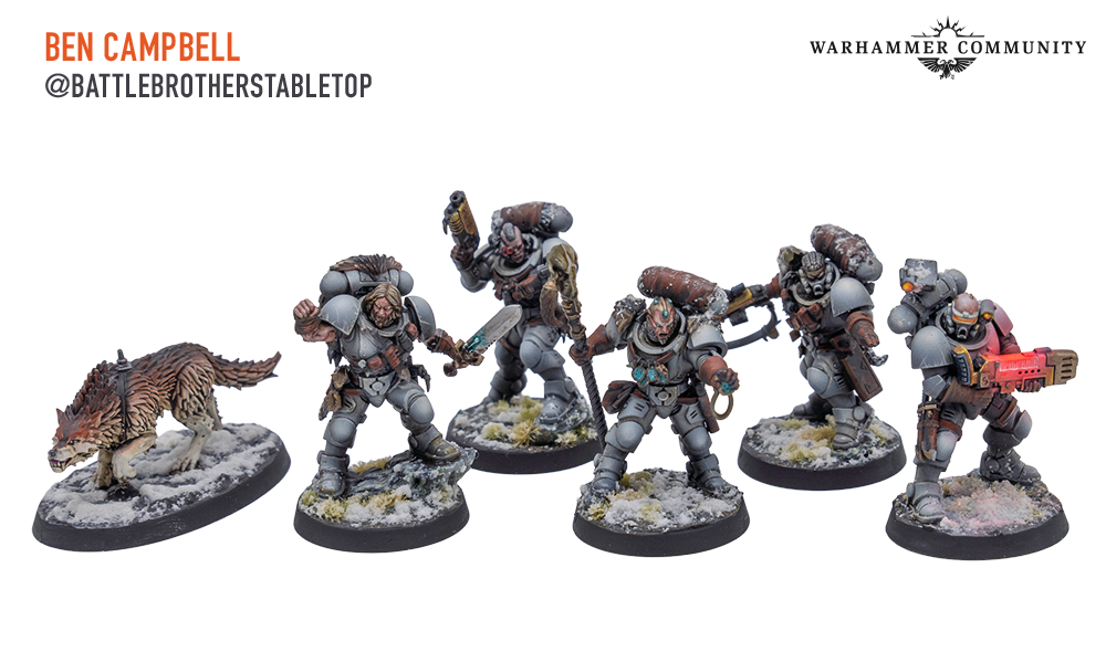 Brad, aka @mountainsidetabletop, Darcy Bono, and Mike from Turning Point Tactics all painted a group of Wolf Scouts for us too. The Fenrisian Wolf is exactly as popular as we expected – who doesn’t enjoy a kill team with a pet?