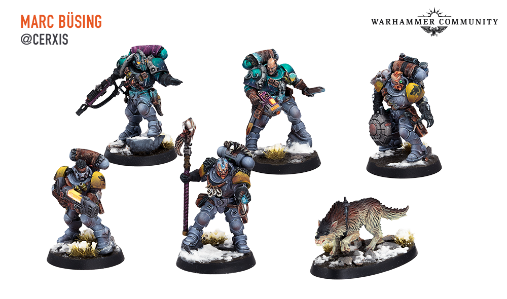 With heightened senses and ferocious ability in combat, the Wolf Scouts are the ideal kill team. Andrew Lynch, Ben Campbell, and Marc Büsing have each managed to complete an entire team of these feral warriors, presumable ready to sniff out foes behind enemy lines.