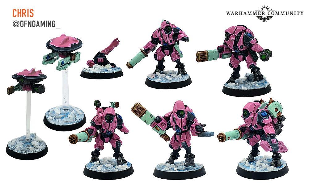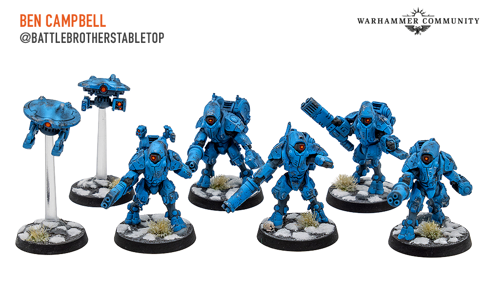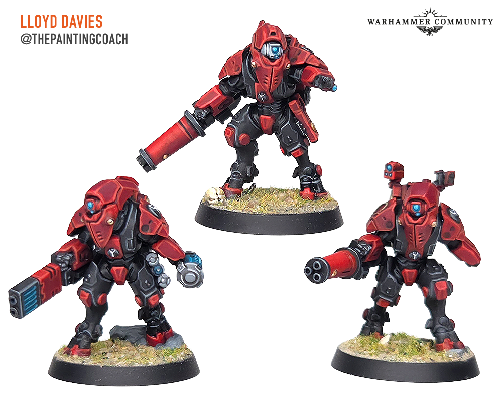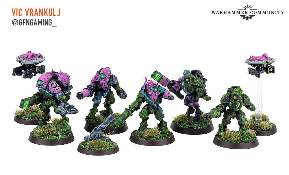 Veteran pilots in top-of-the-range stealth suits armed with deadly weapons make the XV26 Stealth Battlesuits a formidable foe. Ben Campbell, Chris from GFN Gaming, and Vic Vrankulj are clearly eager to get their teams on the tabletop and have painted a full set each.