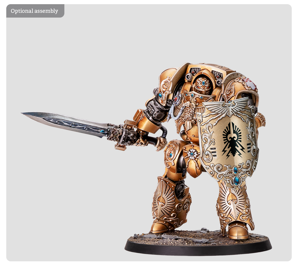 A Contemptor-Achillus Dreadnought with achillus dreadspear that can alternately be built as a Contemptor-Galatus Dreadnought with a galatus warblade and gravis praesidium shield