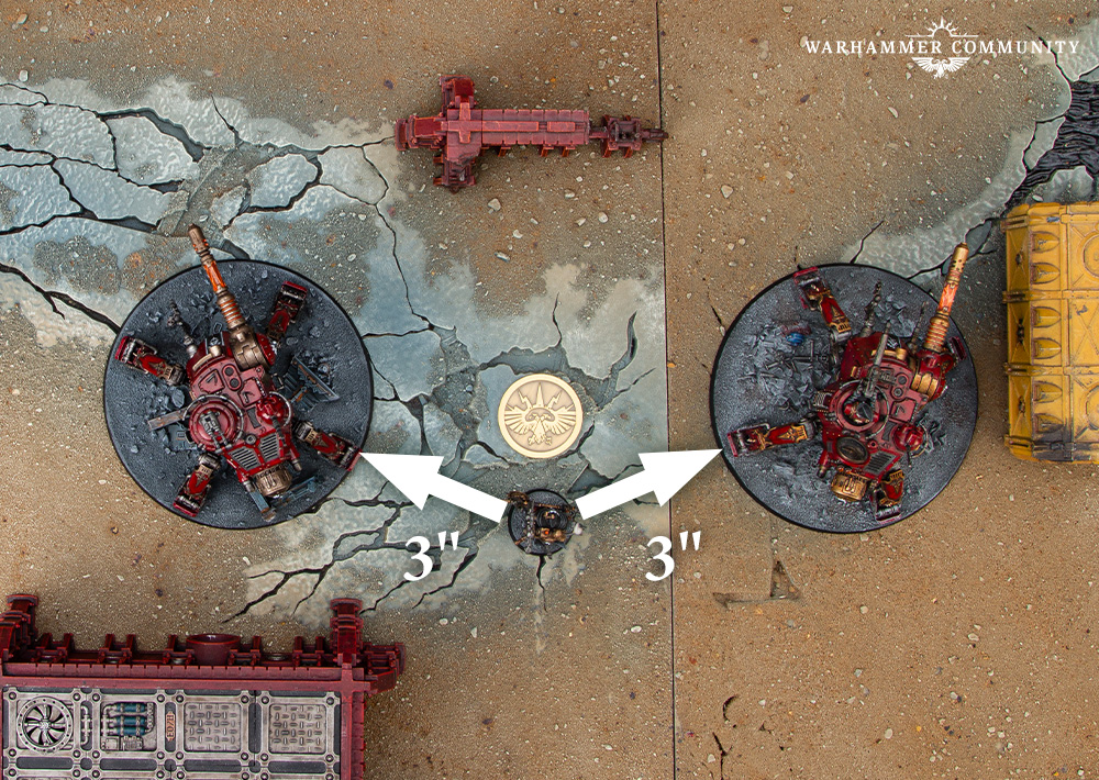 Tech-Priest Enginseers are cheap characters and handy to have around. By placing one with his Onagers, Dan can protect the Enginseer, keep both vehicles in good repair and secure his backfield objective marker. Between the three units they have OC7, which should be enough to counter most fast-moving objective-marker-grabbing units and hold onto the objective marker even if one or more of them is Battle-shocked. If he positions them well, he should also be able to screen a chunk of his deployment zone from deep strikers.