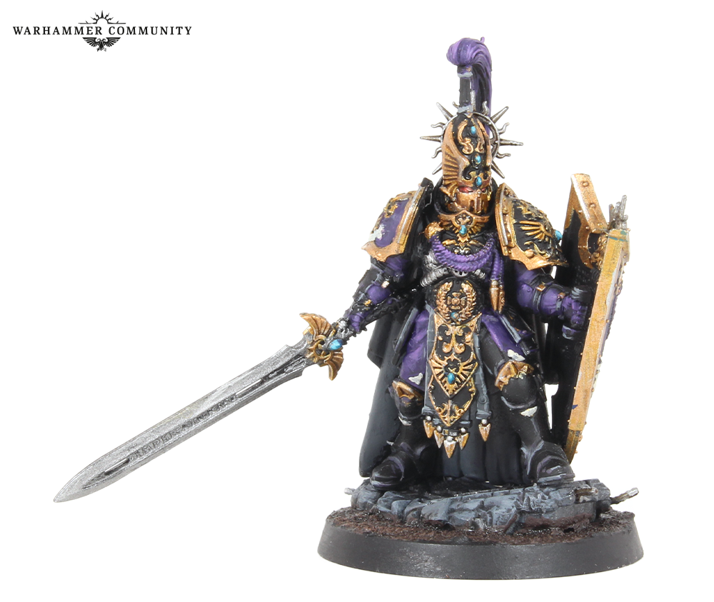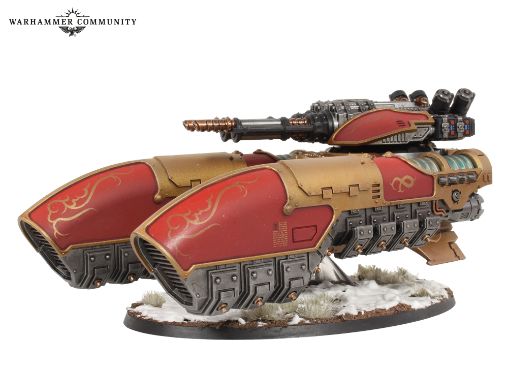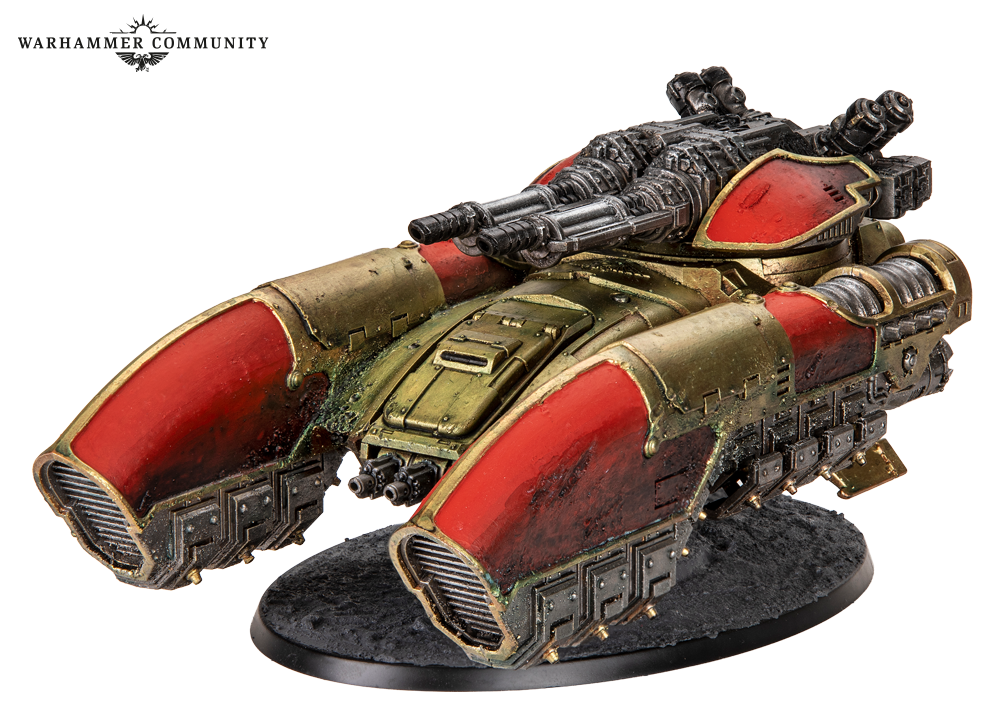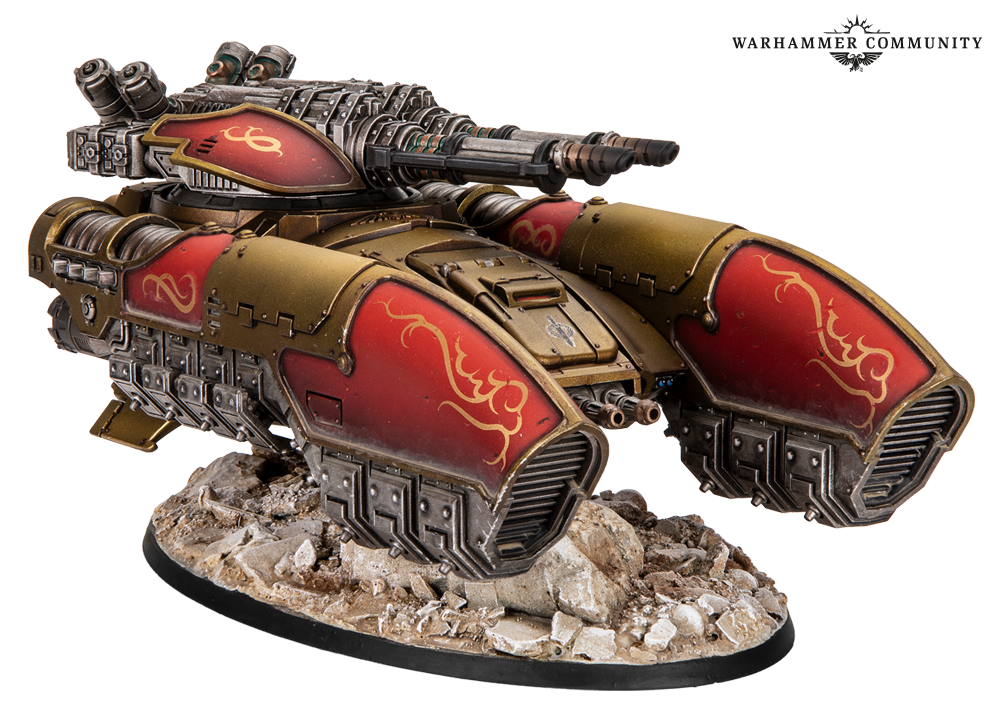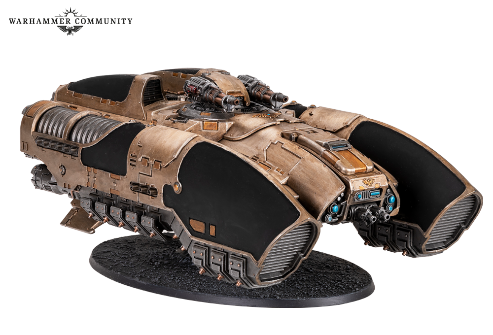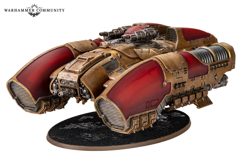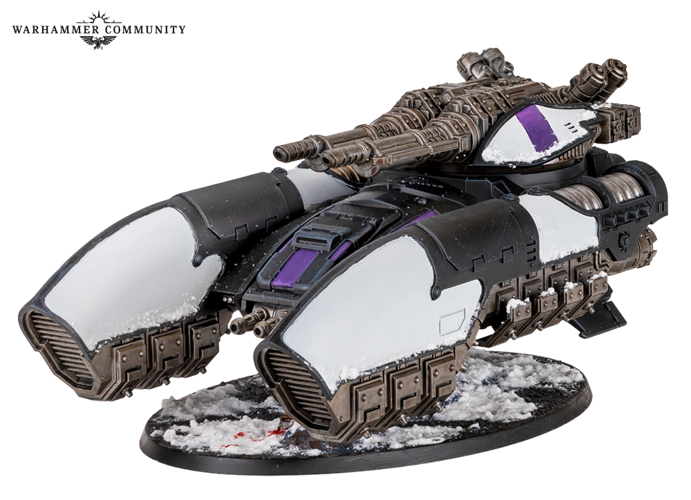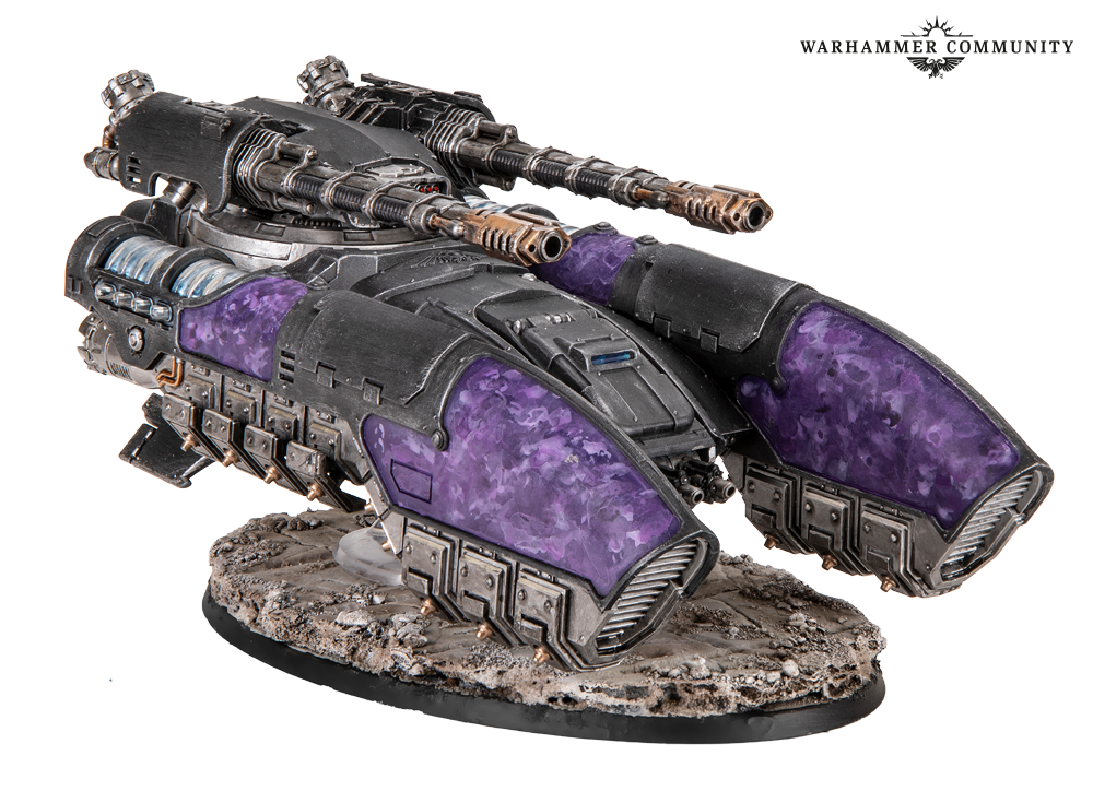 Tomorrow’s pre-orders introduce the standard variant of the Caladius Annihilator grav-tank from the Legio Custodes Battle Group box. This version is armed with an Iliastus accelerator cannon for high-calibre, rapid fire action to take down scores of Traitors at extreme range. We got a good mix of both grav-tank variants, with some nice embellishments, such as mottled purple panels and the decorative swirls included on the transfer sheet. These tanks were painted by Ben, Josh, Miguel, Thomas, and Ed.