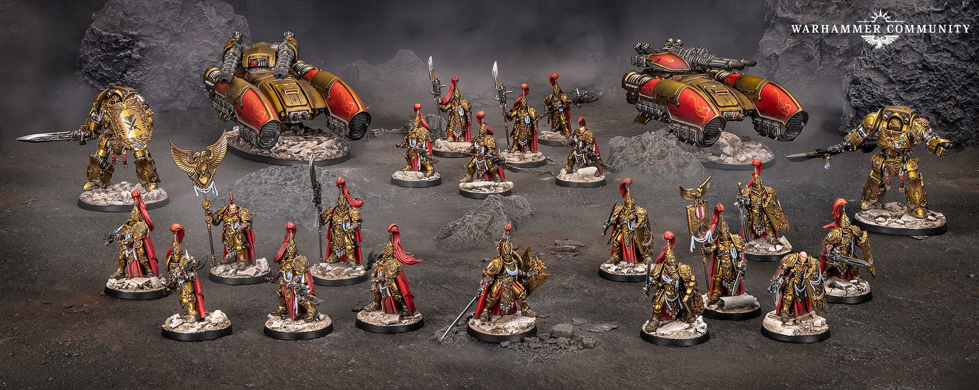 We start with a bang – Ben has painted the entire Legio Custodes Battle Group box, plus an extra Dreadnought, more Custodian Guard, and one of the new Caladius grav-tanks. Very nice, very golden – but what else has the team done?