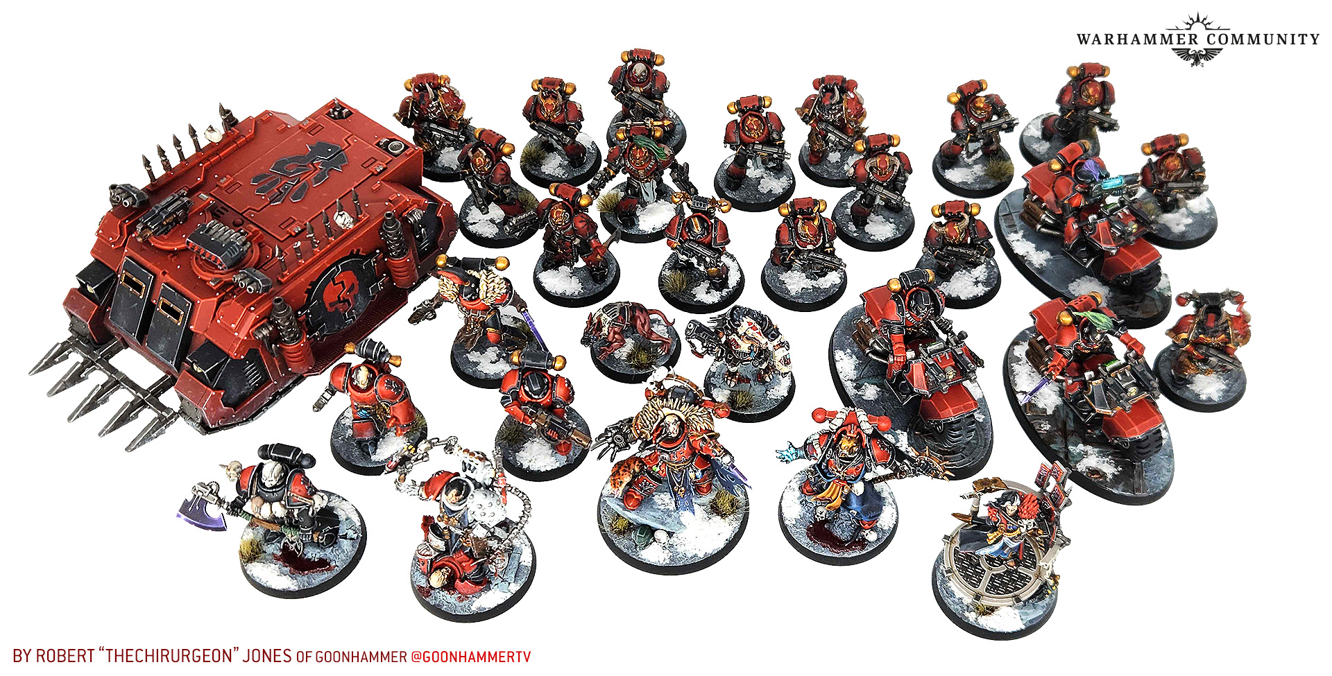 Not content with simply doing a few miniatures here and there, Robert polished off a whole contingent – including Huron, the Masters of the Maelstrom, and some Raiders – to join a larger force of classic Red Corsairs featuring bikes, infantry, and an immaculately painted Rhino.
