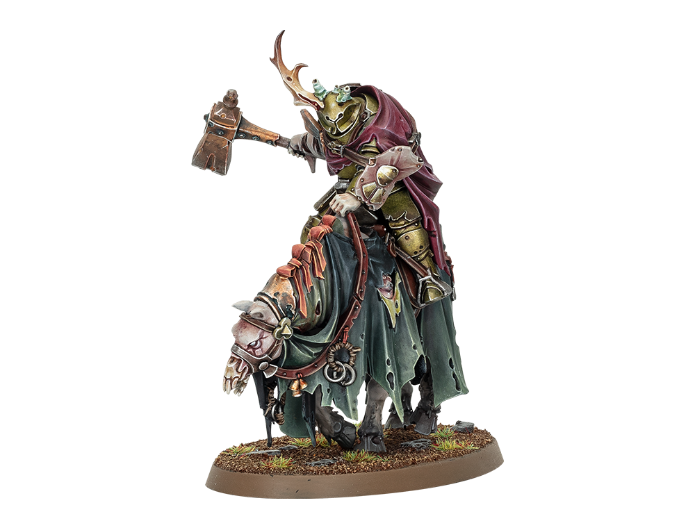 He used his learnings to grow the great beast Gathoblyt, which carries Festus and his foetid workshop into battle. A powerful sorcerer with limitless knowledge of poxes and poisons, he leads the Maggotkin into battle with nauseating exuberance, often campaigning in Ghyran where he poisons waterways with the leech-water plague – one of his prized pestilent creations.