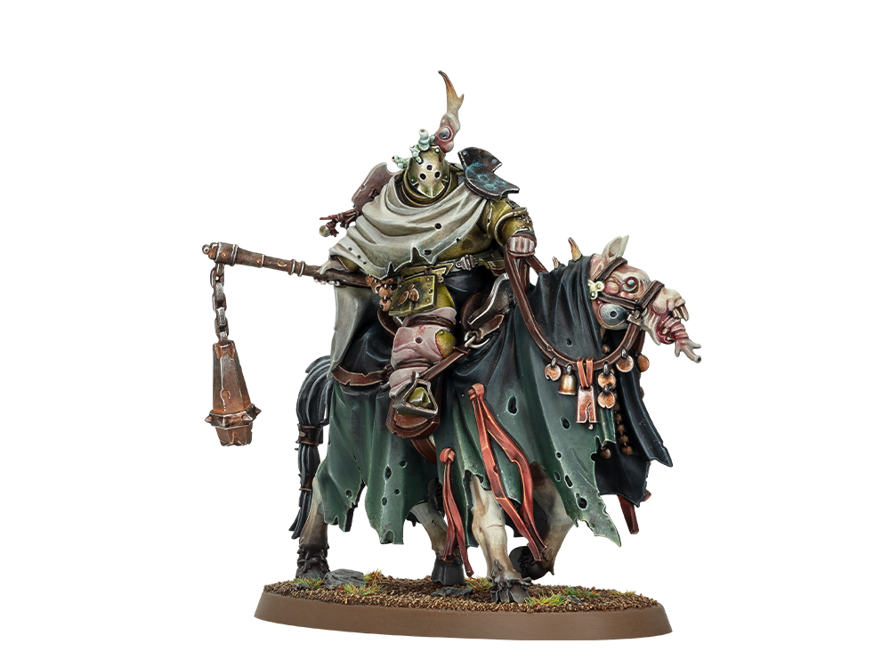 Nurgle’s creed requires its followers to embrace the inevitability of rot and decay, and those frustrated with the stress and rigours of life are easily tempted. Let’s be honest, we’ve all been there, and even noble cavaliers are not immune. Those who are worn out by duty and the endless struggle for survival often fall into deep ennui – only to be relieved by the grace of Nurgle and become Sloven Knights.