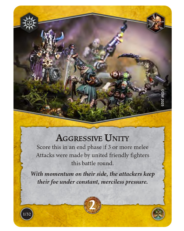 Score this in an end phase if 3 or more melee Attacks were made by united friendly fighters this battle round.