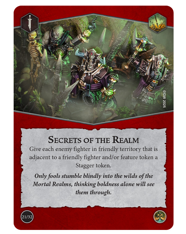 There are plenty of opportunities to put both Rivals decks into use with a wide variety of warbands in order to figure out the most powerful combos. There are 18 warbands available to pre-order on Saturday as well – two new warbands in Spitewood, and 16 returning via Grand Alliance bundle boxes.