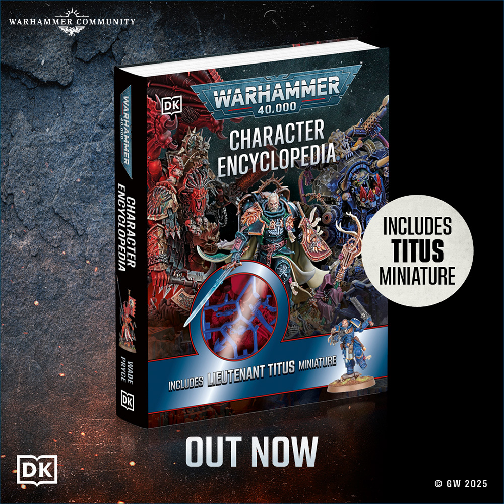 Available to buy now, the highly anticipated Warhammer 40,000 Character Encyclopedia introduces you to more than 120 characters across all the factions of Warhammer 40,000. The history of this grimdark universe is dotted with legendary heroes and despicable villains – which is which depends on your point of view – and this book provides details on a whole rogues gallery of them. It also comes with a Captain Titus miniature, in blue plastic.
