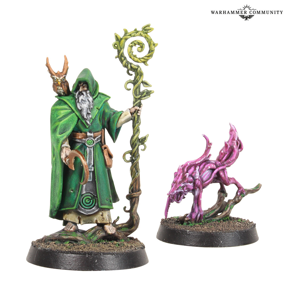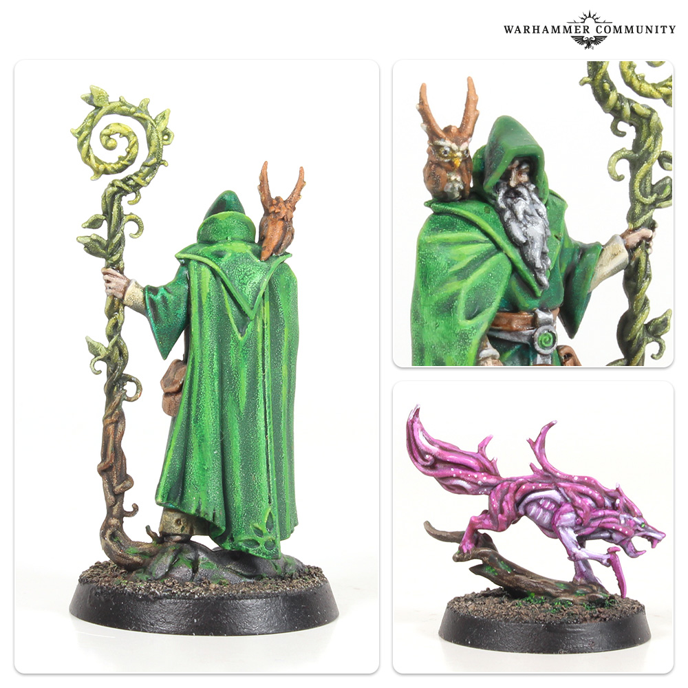 My version of Vyne isn’t too dissimilar from the box art. It’s pretty simple stuff – Contrast paints for a nice smooth basecoat, and then highlights manually applied with Layer paints. Using Contrast paints also made it really easy to blend the colours on the staff to transition from the brown of the tree to the light green of the staff head.