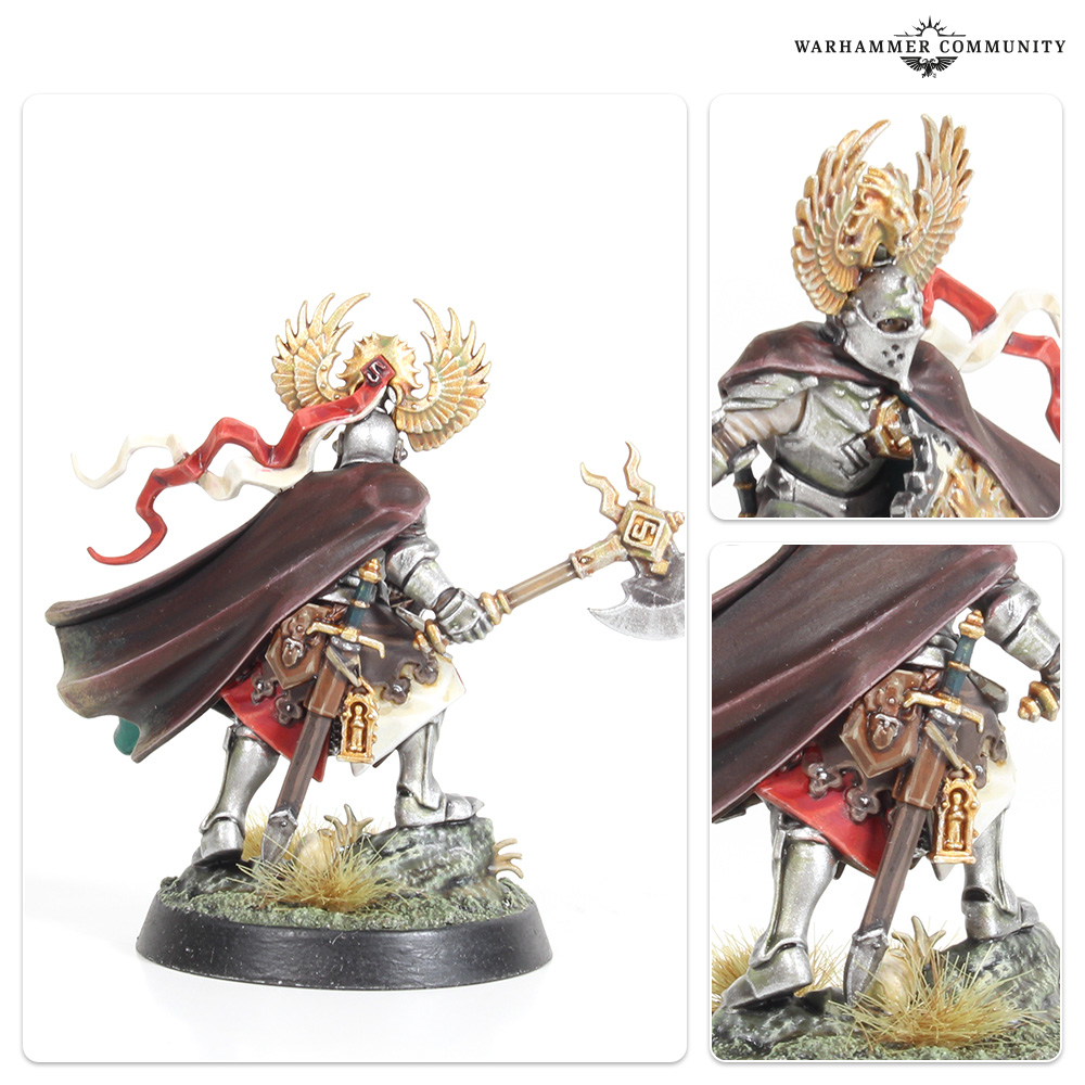 I prefer to paint in sub-assemblies, which can sometimes be a challenge with push-fit minis, but Edmark split very easily into three, including an ingenious bit of design where the helmet crest and visor are attached to the cloak front and shield, separate from the rest of the head. This meant I could paint Edmark’s visible eyes before the visor was added over the top.