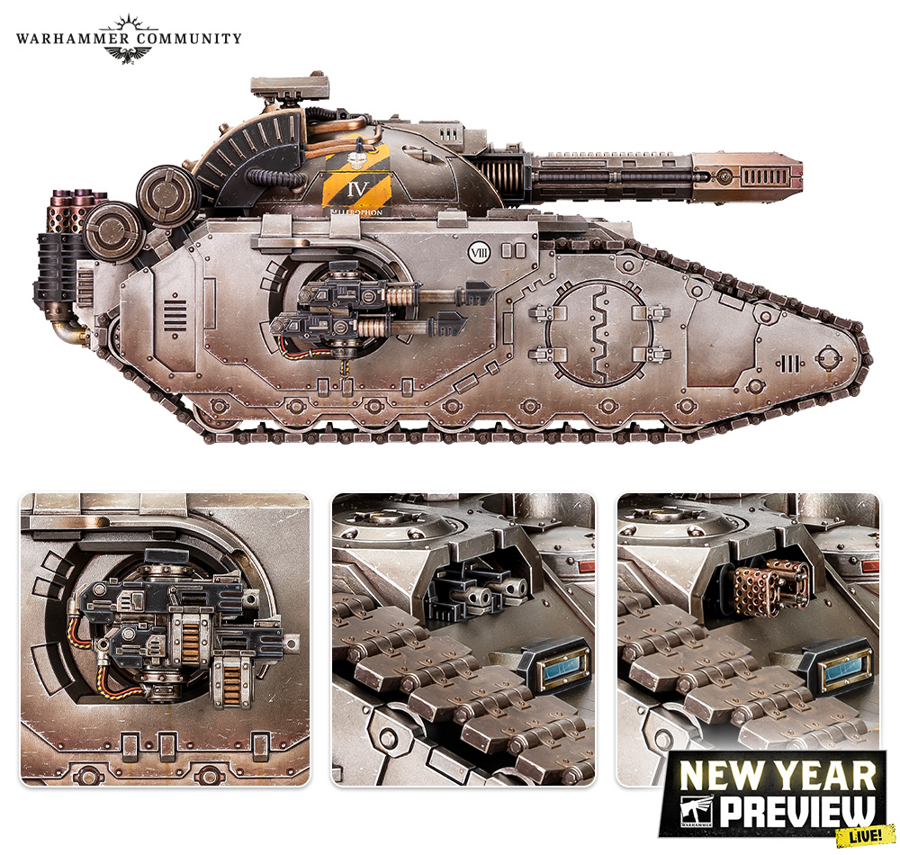 This variant of the Fellblade chassis mounts a devastating volkite carronade the size of a bus, which projects a beam of heat so intense it sears right through power armour and atomises the fleshy bits inside – a party trick that came in shockingly handy when the Space Marine legions started shooting at each other.