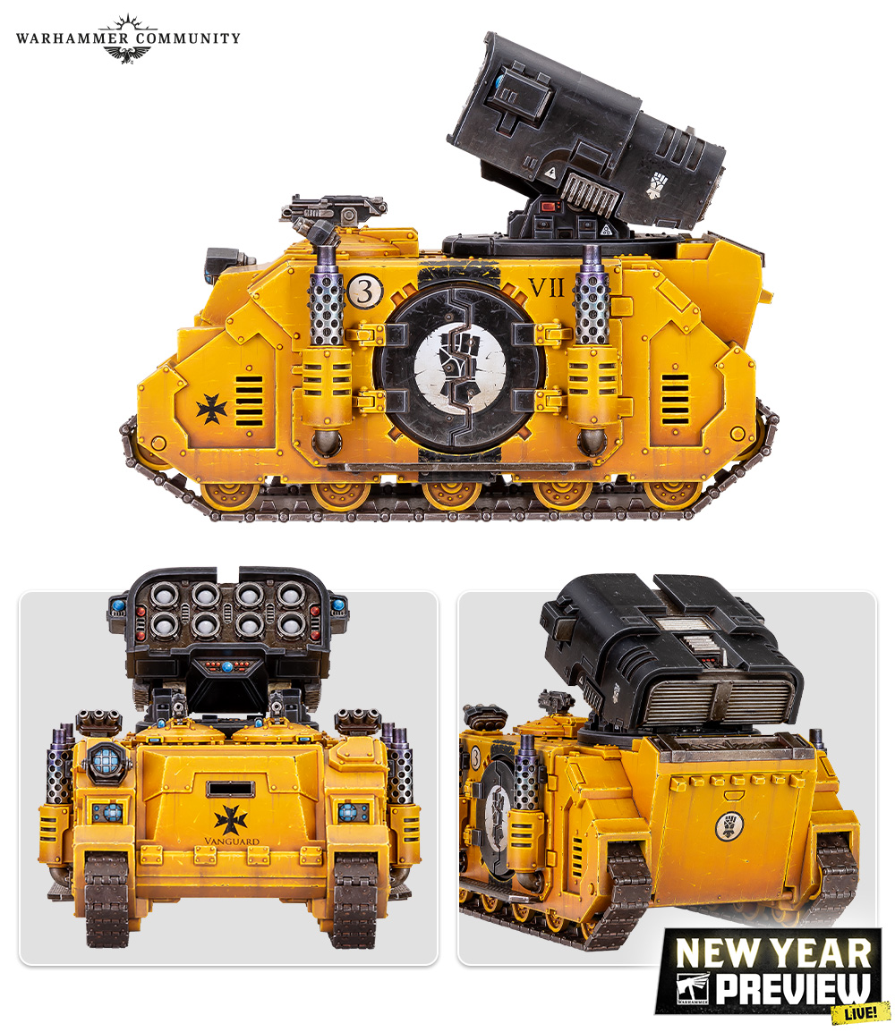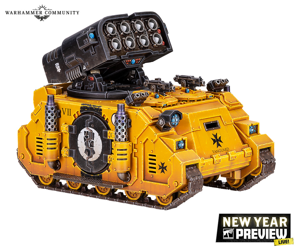 Yes! Exactly like that one. The Whirlwind is a certified Astartes classic combining the venerable Rhino chassis with a huge missile launcher that hurls storms of explosive warheads into enemy ranks, whether it has line of sight or not. The sophisticated range-finding and targeting auspexes mounted to the launcher allow multiple different kinds of munitions to be loaded and fired independently, from standard high explosives to incendiary Pyrax rounds.