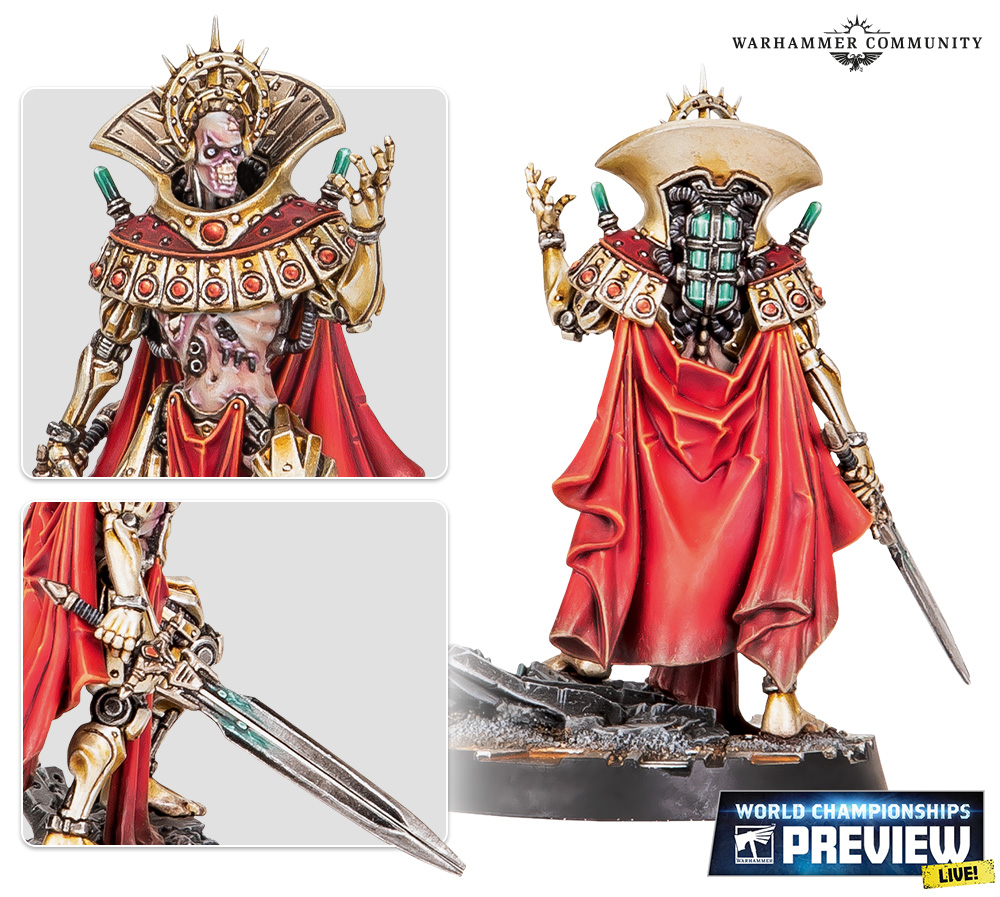 After rising from a tomb deep in the Vaults of Temenos, Ozostium Aranthus has seized the mantle of ruler of Necromunda. His origins are largely a mystery, though it is known that he hails from a time before the Imperium. Standing taller than most humans and clad in gilded armour that portrays a perfect form, his worshippers adore him as a living demigod, their desire to pay deference to him not natural but the result of his ability to subtly manipulate warp energy around him.