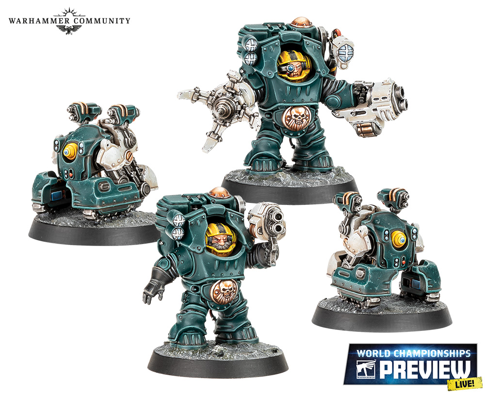 There are others still who show peerless talents in the arts of deep mining and chem harvesting. Known as Exo Masters, they’re at home in the most dangerous environments, battling off rival claimants or vicious fauna. You get two of each of these new leaders in this box, armed with a variety of weapons, and two Techmite Autoveyors – hardy little tracked robots equipped with all sorts of complex sensors that help the Squats sniff out ore seams and chem deposits.