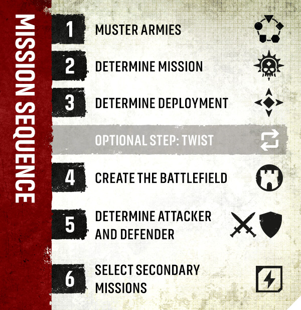 Finally, Twists also return as an optional mechanic that can modify core rules or introduce unexpected challenges – one can allow all units to move through terrain like nimble infantry, while another causes both players to completely swap their primary objectives for extra chaos!