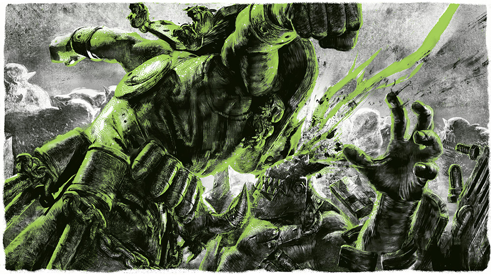 The Orks take centre stage as the action moves to Armageddon, and they’re swarming all over a new slate of Black Library books. Let’s see which is the biggest and greenest.
