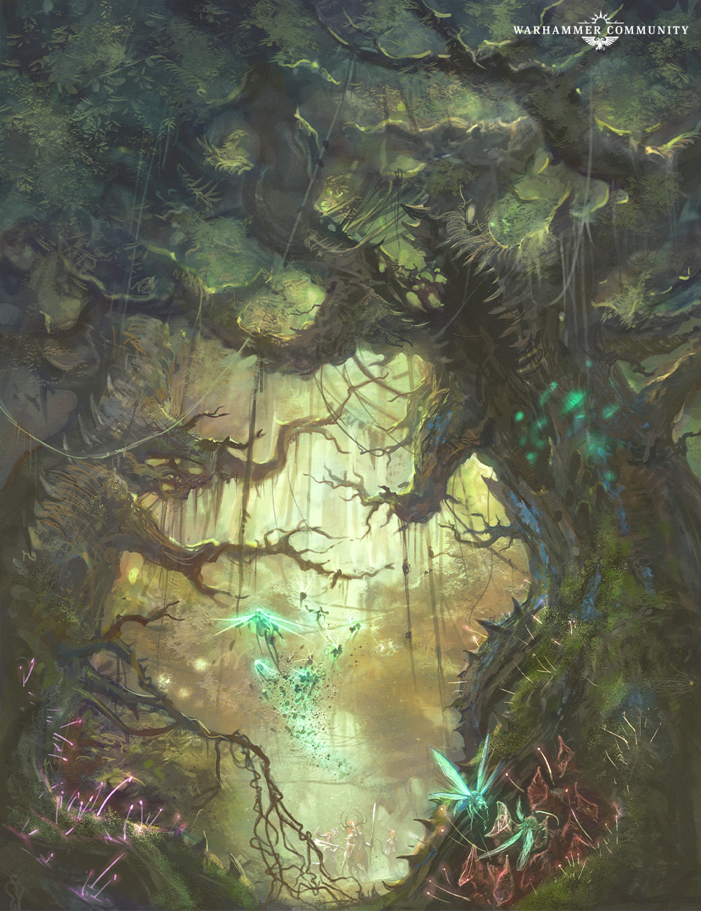 Join us as we venture to Ghyran to bask in the natural beauty of some classic Sylvaneth artwork for Warhammer Age of Sigmar. Come, sit with us beneath the Oak of Ages Past and enjoy these tree-mendous pieces of art.
