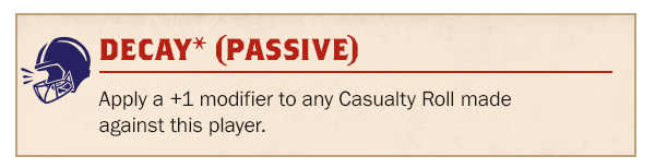 Apply a +1 modifier to any Casualty Roll made against this player.