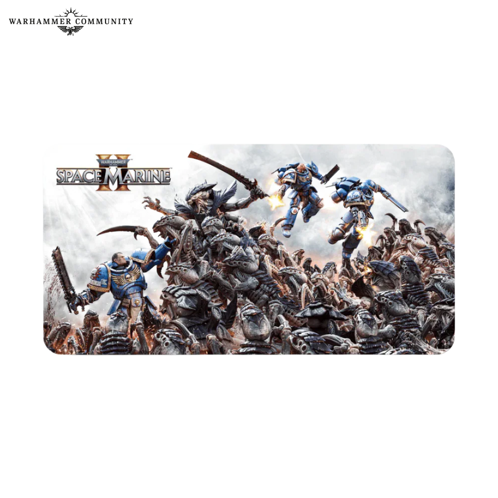 The prize pool for week three includes a premium Space Marine 2 hoodie, a premium Space Marine 2 t-shirt, and a Space Marine 2 gift set that packs a collectible coin, a pair of Ultramarines blue socks and a pair of Lieutenant Titus red socks in a magnetic box. There is also a gaming desk mat featuring Space Marine 2 art, and 12 Warhammer 40,000 Introductory Sets.