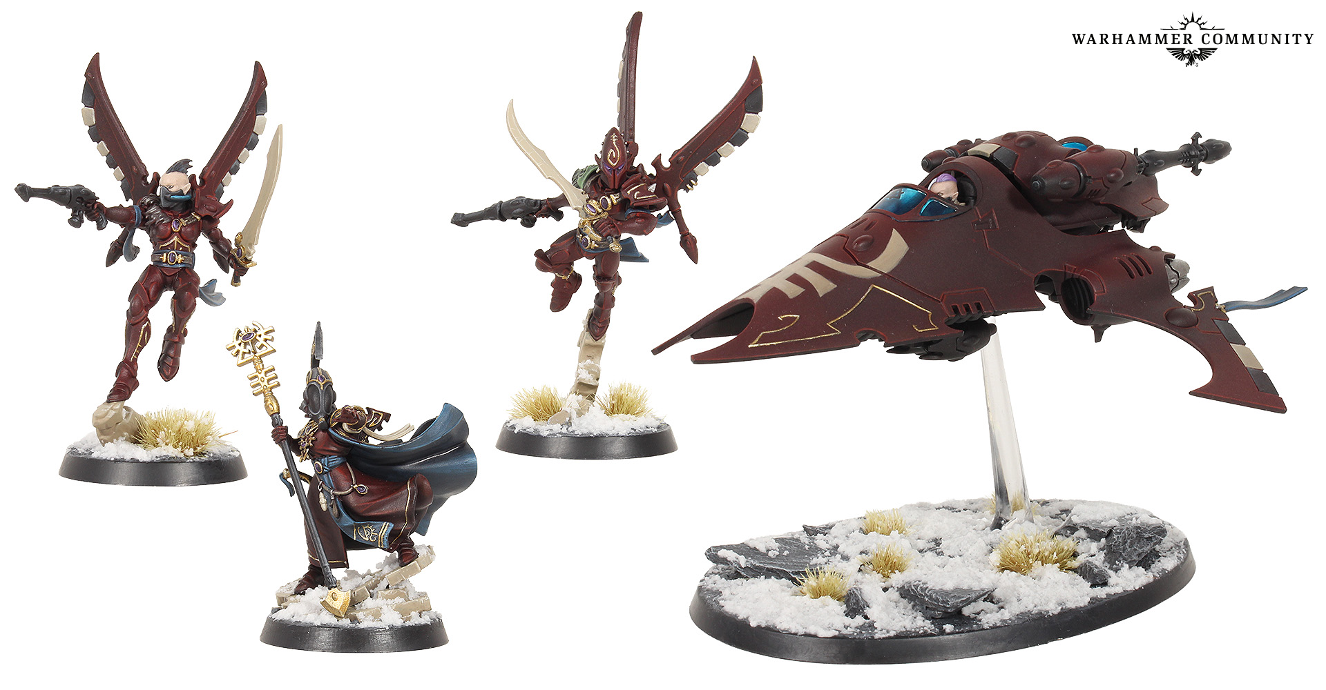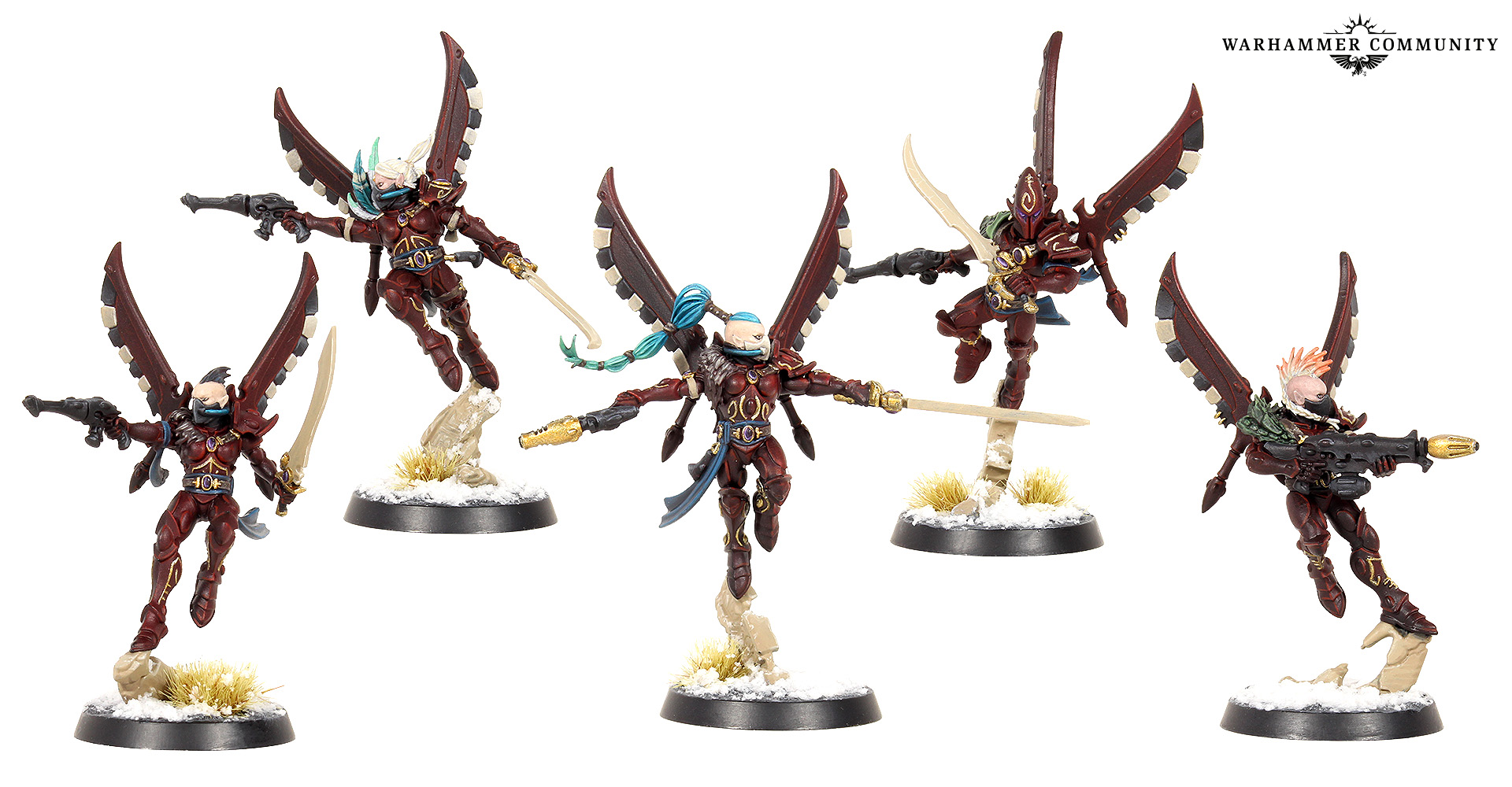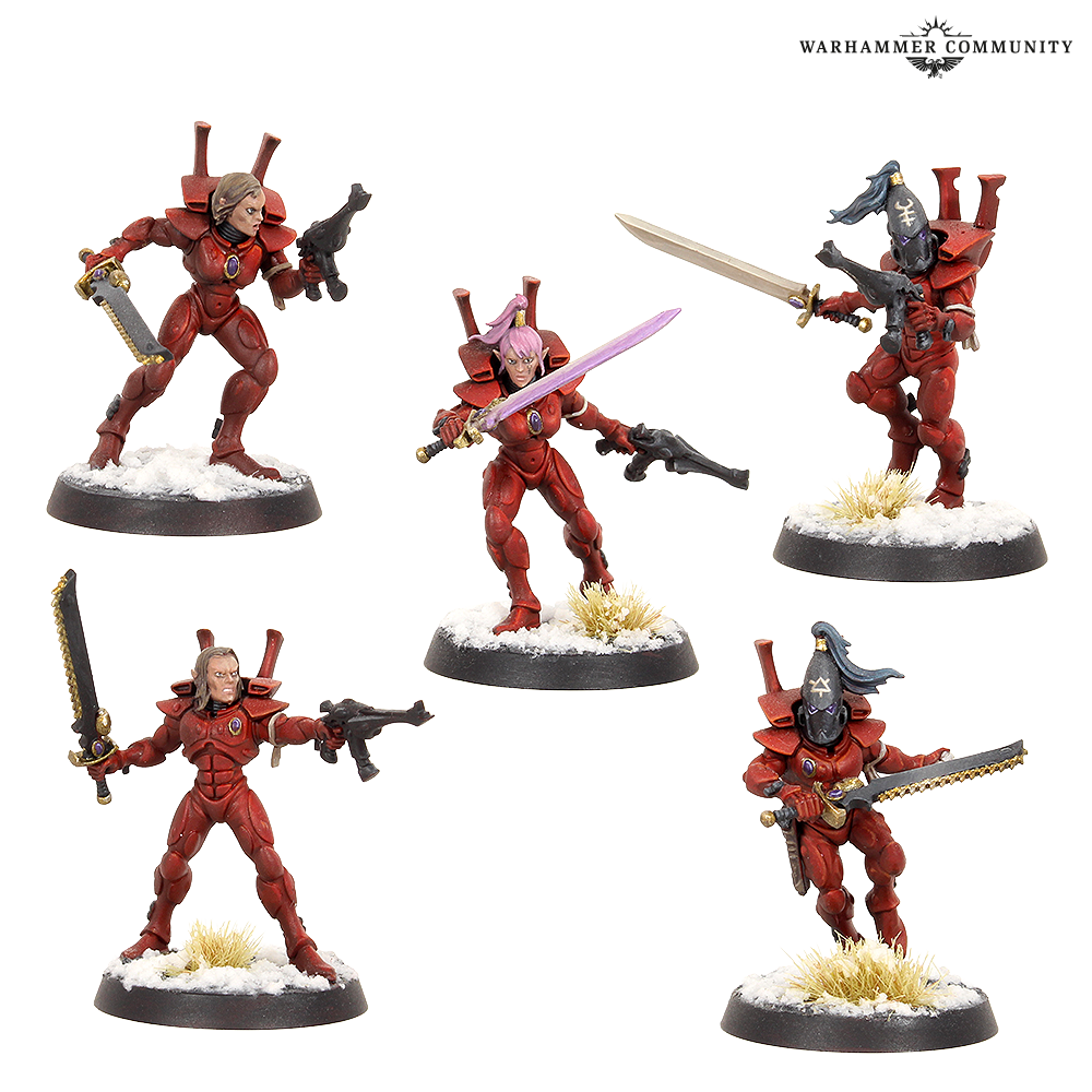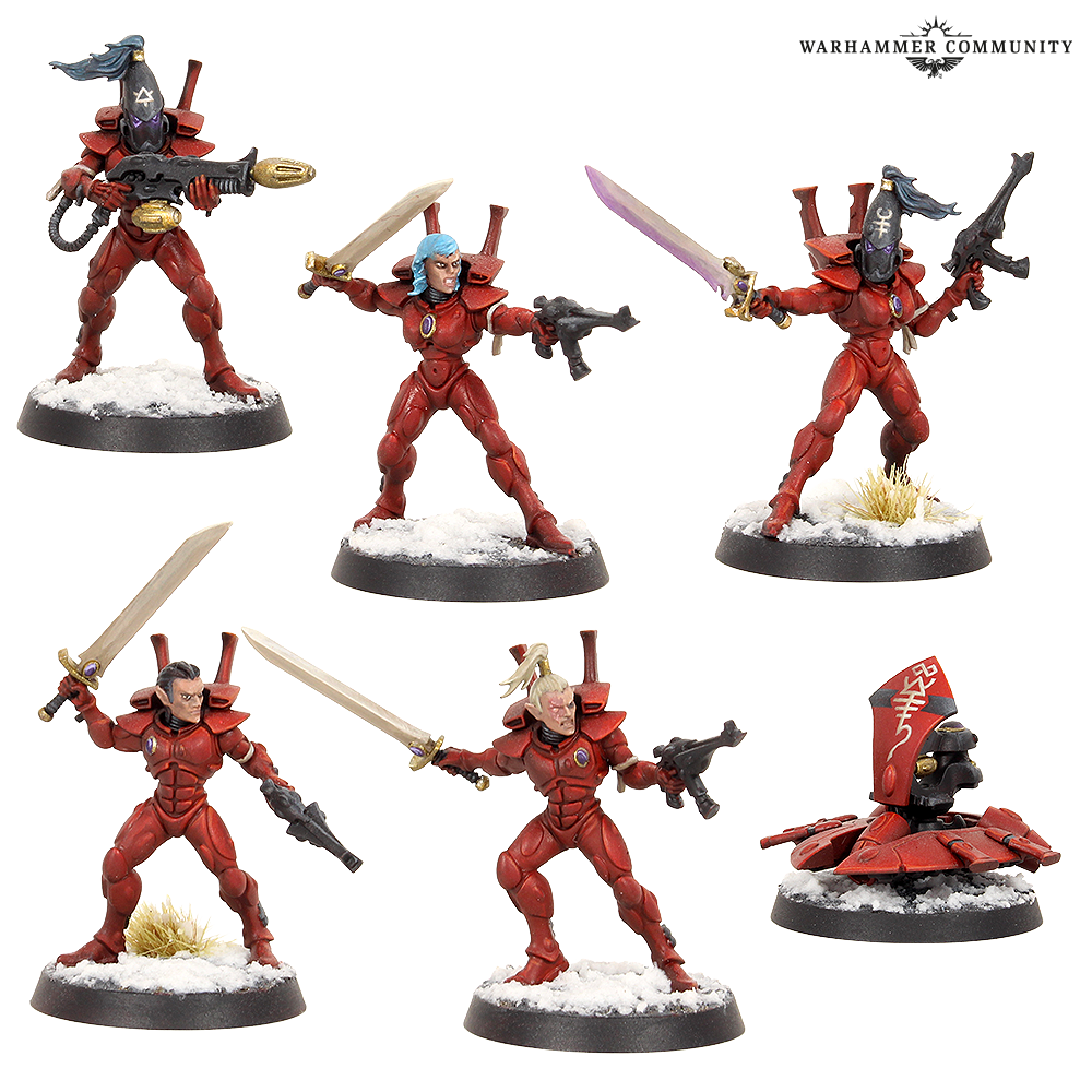 I wanted to paint them in the standard red, black, and bone colours, showing their allegiance to the Ynnari faction more so than their own colours, most likely drawing warriors from different craftworlds and Aeldari societies as they travel across the galaxy.