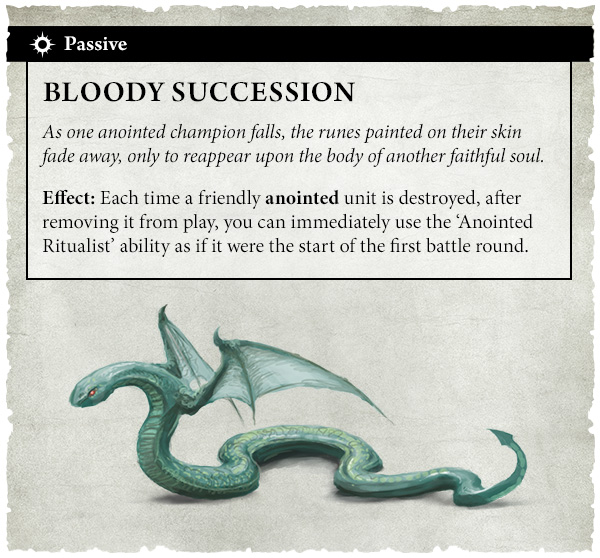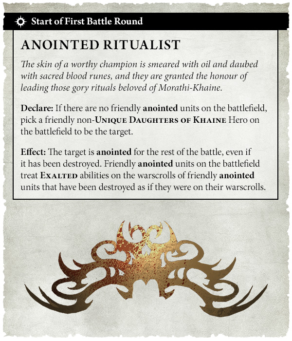 Effect: Each time a friendly anointed unit is destroyed, after removing it from play, you can immediately use the ‘Anointed Ritualist’ ability as if it were the start of the first battle round.