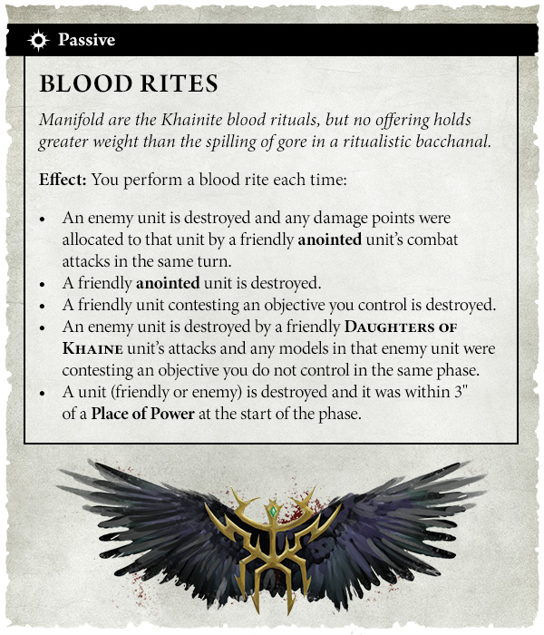 An enemy unit is destroyed by a friendly DAUGHTERS OF KHAINE unit’s attacks and any models in that enemy unit were contesting an objective you do not control in the same phase.