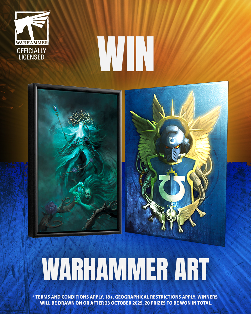In the lead up to the big event, we’re running a competition to win two gorgeous pieces of art – an Ultramarines Emblem Textra Displate, and a framed canvas print of Lady Olynder. Both are signed, and will make awesome decorations for your hobby room.