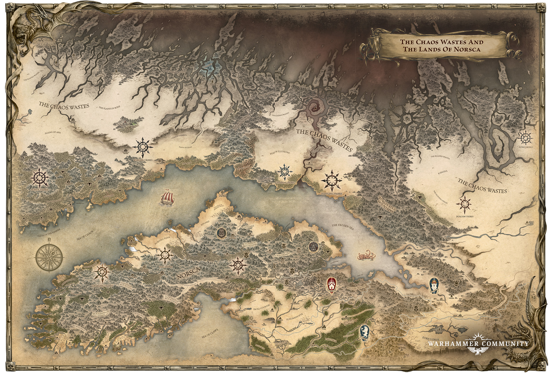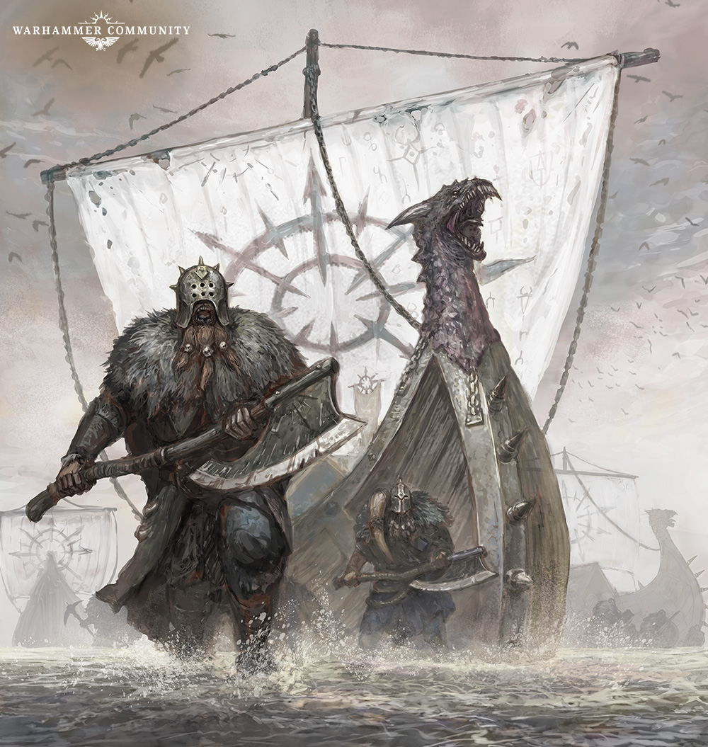 JTY: The Kurgan live to the Old World’s east, north of Kislev and the Dark Lands, where tribes such as the Kul, the Dolgam and the Yusak roam the great steppes. To the west, in the cold and mountainous land known as Norsca, dwell Norse tribes such as the Sarl and Graeling. Further north, beyond the Sea of Chaos, where the Shadowlands meet the blasted landscape of the Chaos Wastes, live tribes such as the Kvelligs and Hastlings.