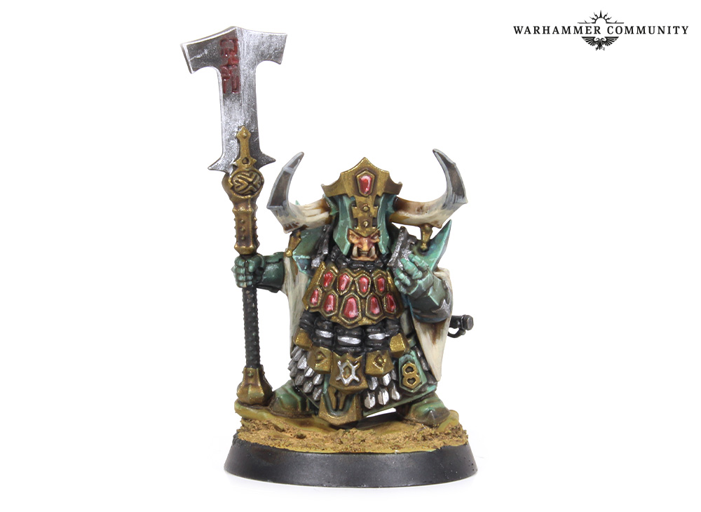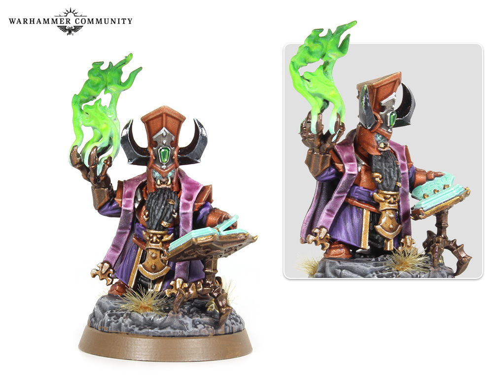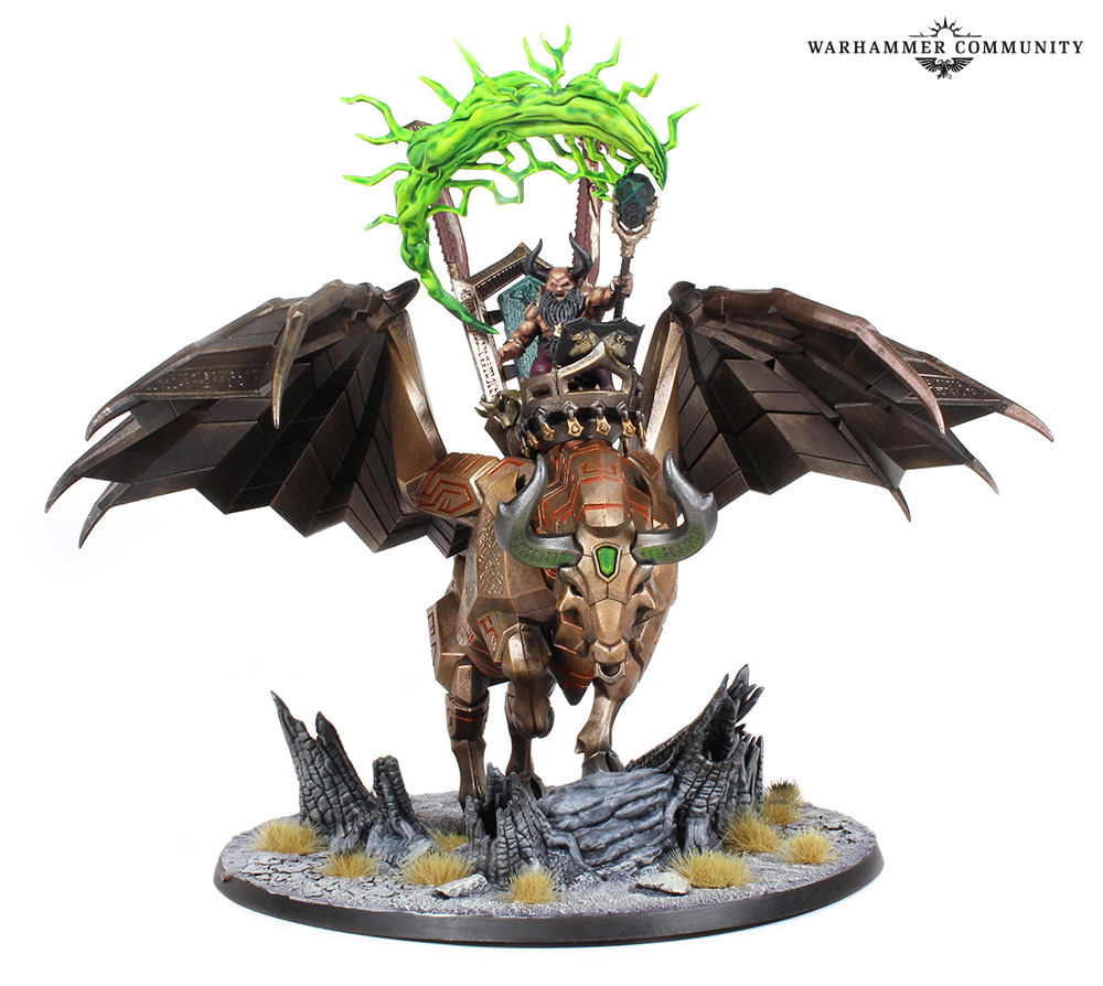 As a certified looker-after of ‘Old Things’* I couldn’t resist adding what might be the oldest mortal in the Realms to the force. Painting his mount Ghorrakos was great fun, drybrushing up through pretty much all our brass and copper paints – I had to get some Hashut Copper in there! Shading different parts of him with Seraphim Sepia, Agrax Earthshade and Reikland Fleshshade also added some variety.