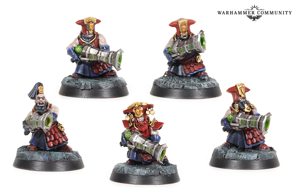 Last but not least, Dan from the Warhammer Painting Team – who recently painted a Dominator Engine – also found the time to give us another red take on the Zharrdron, this time painting a unit of Infernal Razers armed with chunky Grizmalok Blunderbusses.