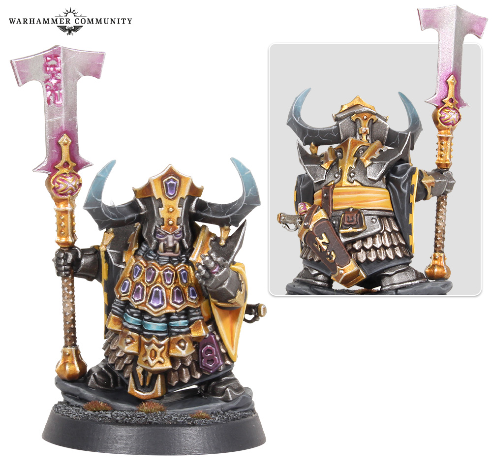 Luke S: For the Helsmiths I snapped up two characters to test out two schemes – a War Despot in colours of Muspelzharr, and an Ashen Elder from Ur-Zorn. Both presented opportunities to experiment with metallics and freehand, and let me plan out a Spearhead colour scheme.