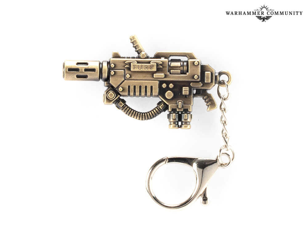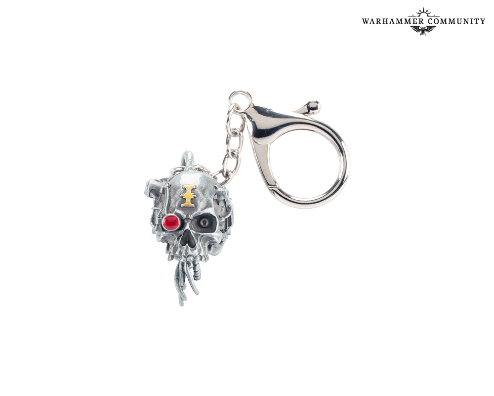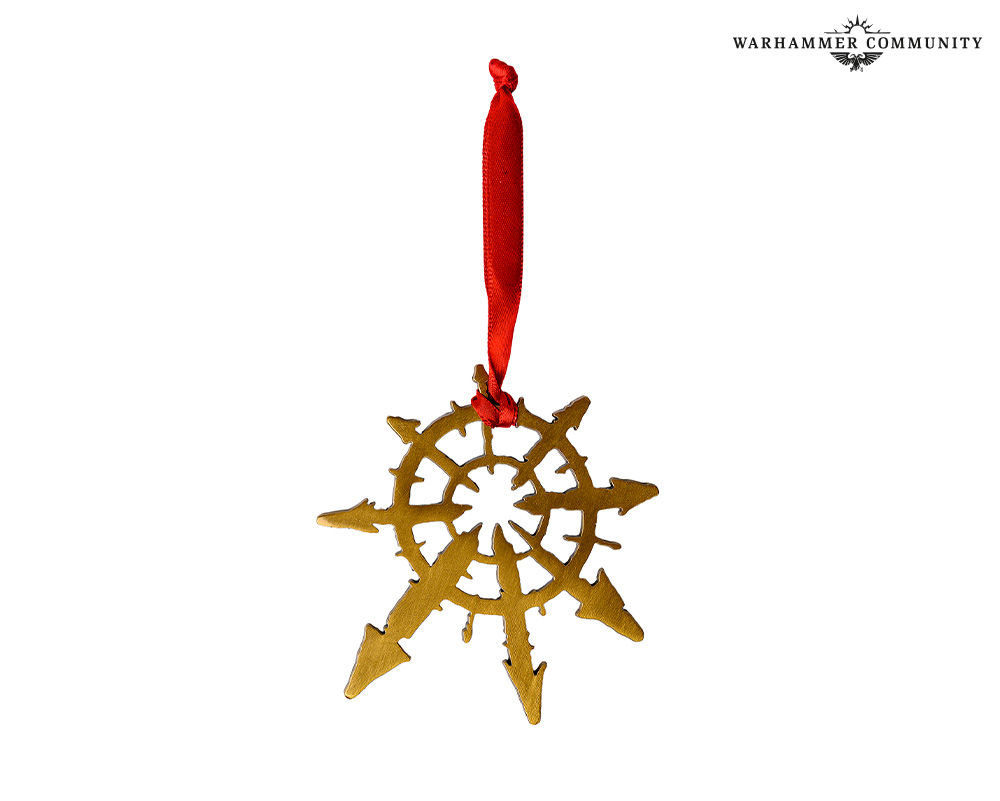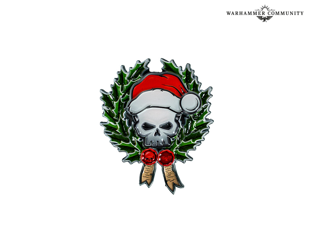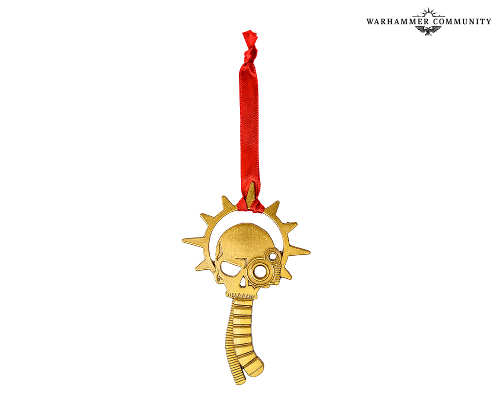 Further ornaments for your tree include a Chaos star and an Imperial servo skull, both topped with red ribbons, so you can add some Warhammer 40,000 flair to your decorations. Our friends at Starforged have created a new purity seal badge, a Death Company purity seal badge*,and a set of keychains representing Mephiston’s pistol, an Eradicator’s melta rifle, and a servo skull. You can even make your fridge look all fancy with a set of Christmas magnets, featuring a skull and wreath, a badge of the Inquisition, and a gleaming Stormcast Eternal.