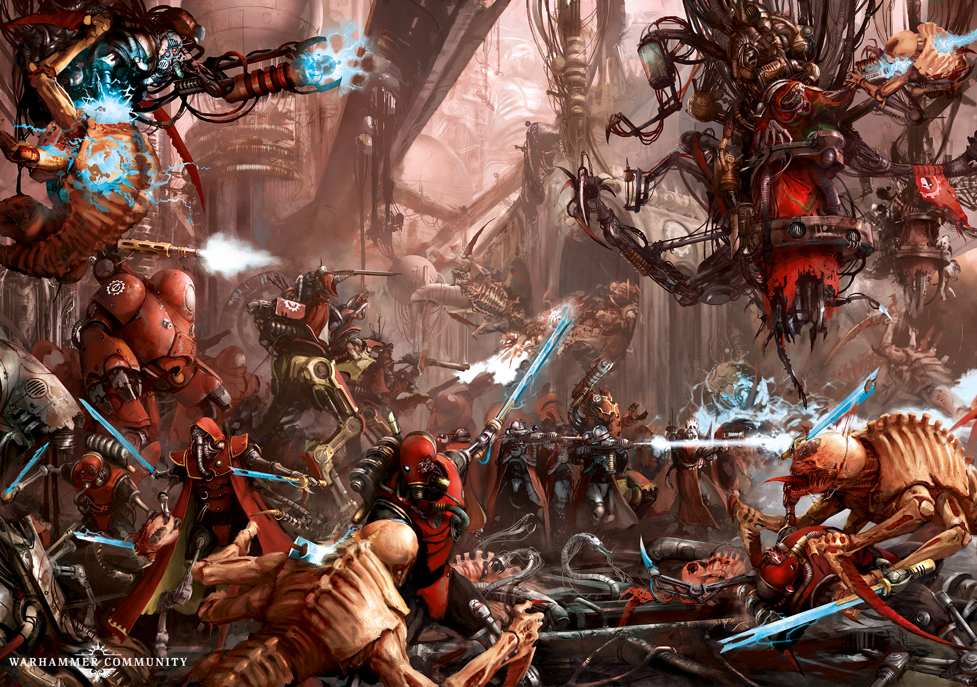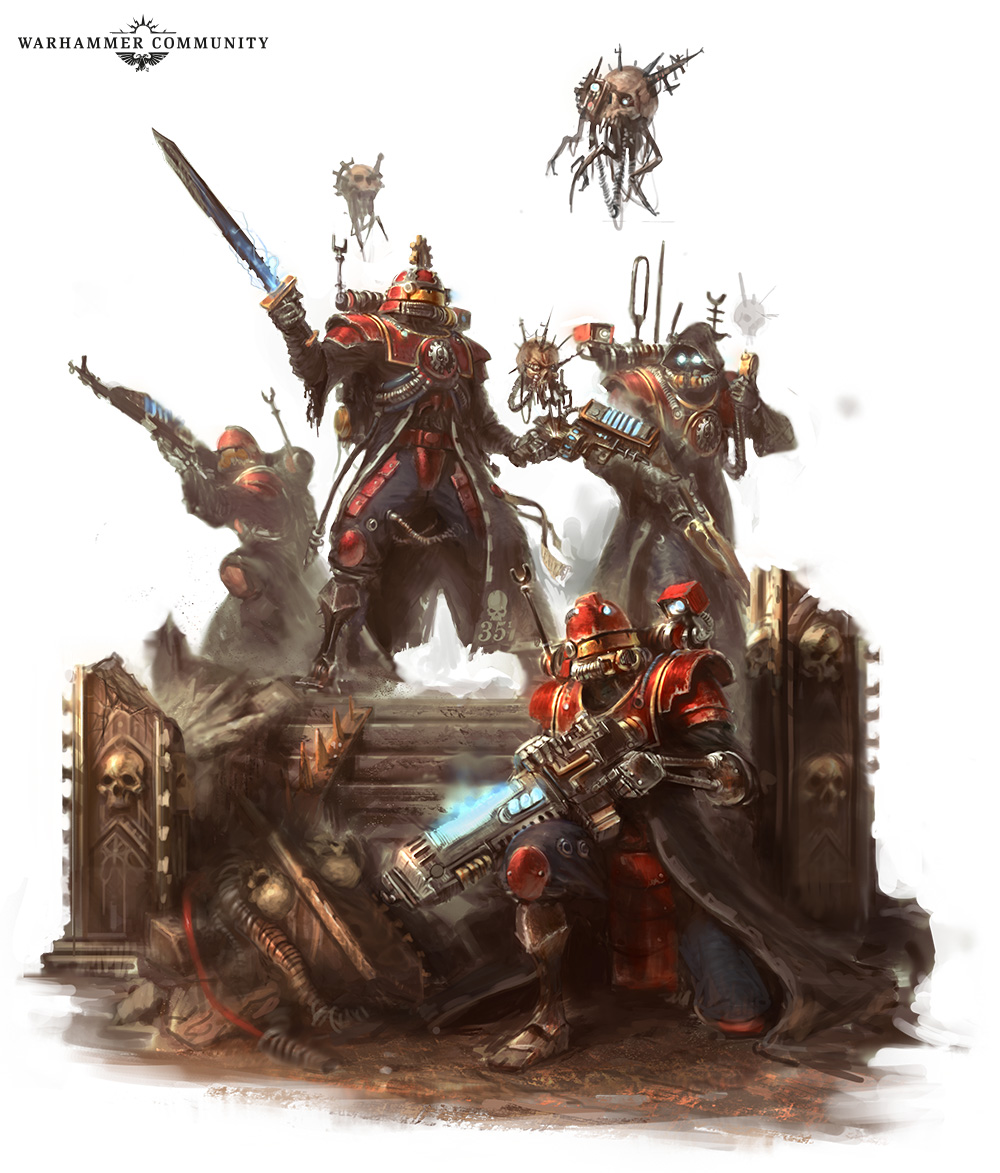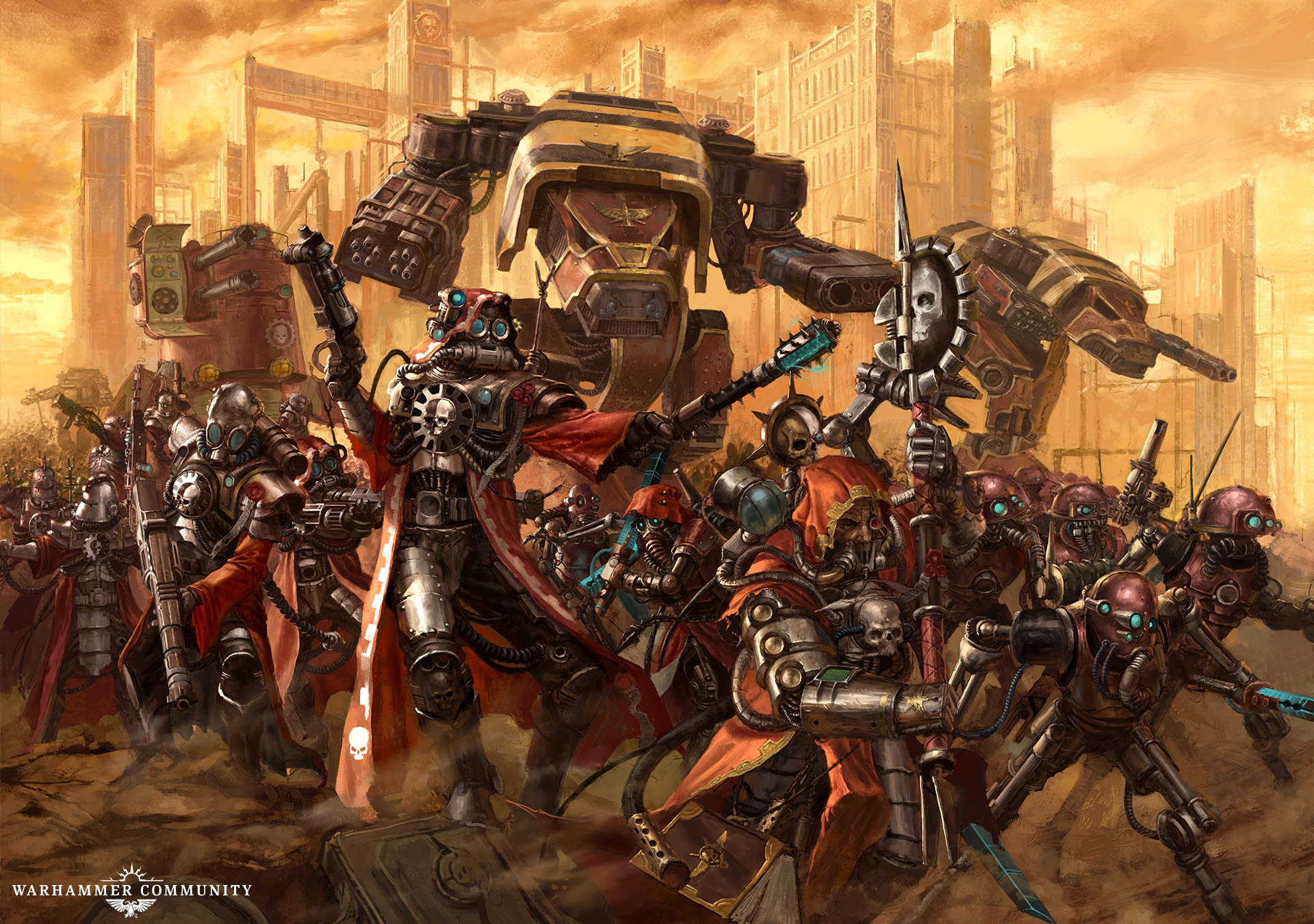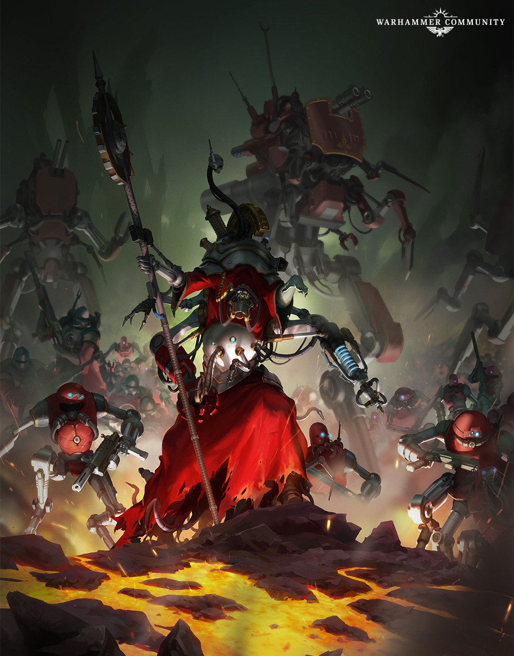 They are fusions of human and machine, the most advanced Tech-Priests often barely recognisable beneath layers of enhancement, while their most loyal soldiers are scarcely more than unquestioning automata who retain little of their prior forms. As such, their art represents the Imperium at its most dogmatic and bizarre, with a heavy splash of Martian red for good measure.
