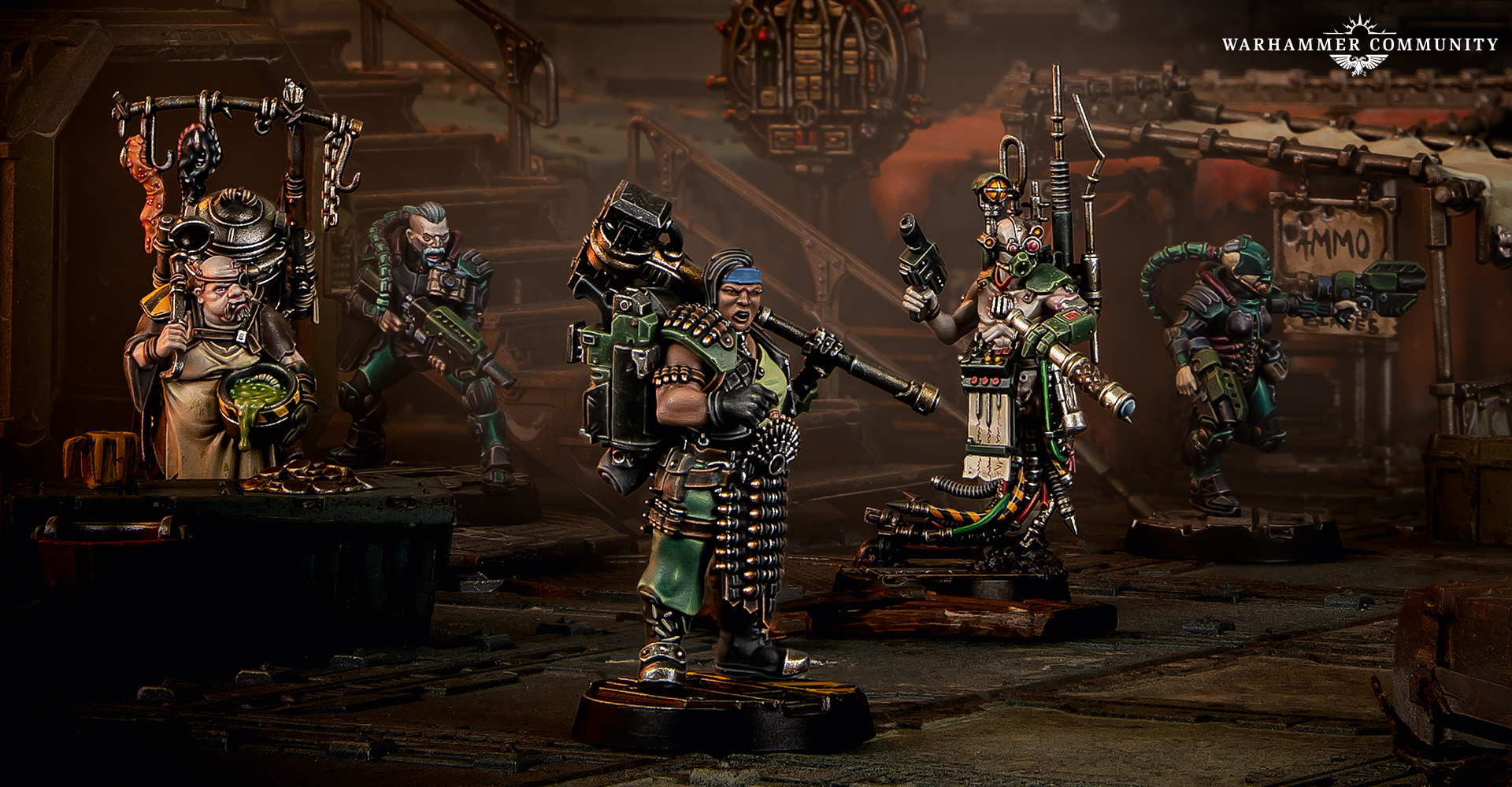 Updated rules for the Rogue Doc with medi skull and Dome Runner, and new rules for the Hive Watcher, are all available in the upcoming book Necromunda: The Aranthian Succession – Spire of Primus, while rules for Sloppers and Ammo-Jacks exist in the various House of… gang books, as well as Bastions of Law and Halls of the Ancients.