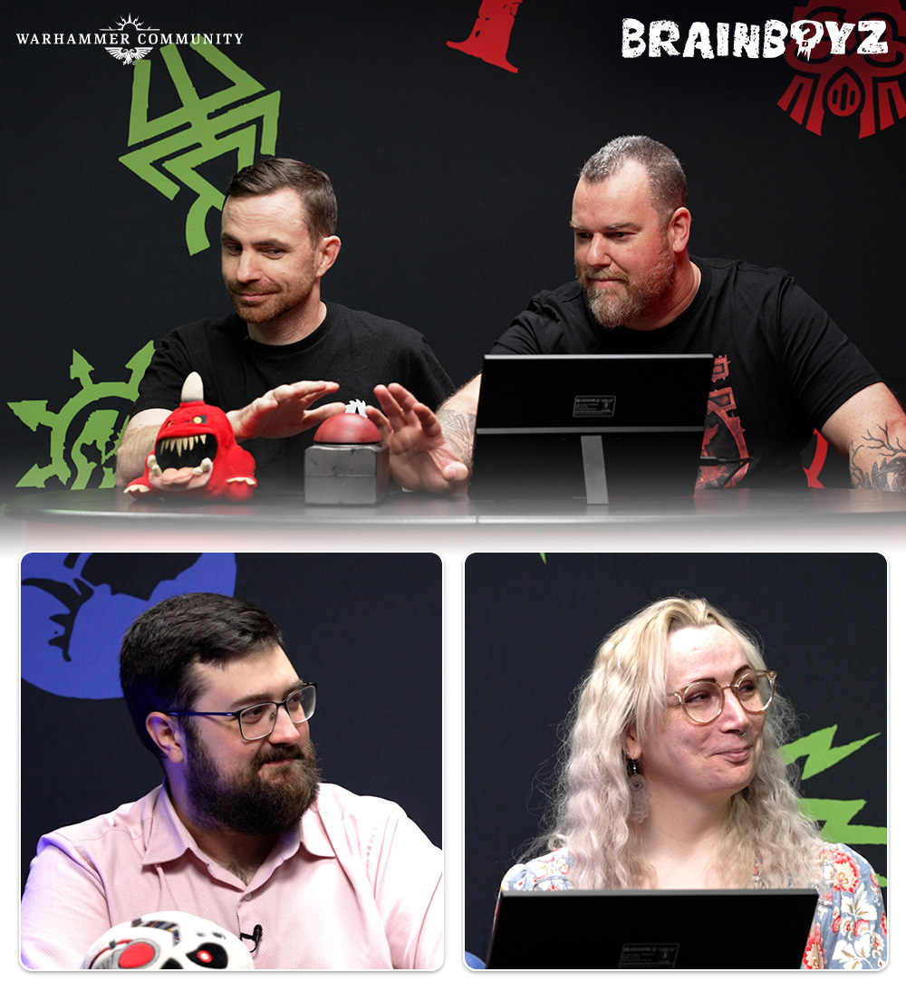Finally, on Brainboyz, four guests split into two teams and get tested on their knowledge of all things Warhammer over five rounds, starting with simple true or false questions, through questions about the player’s favourite factions, and guessing models from some hilarious pictures of people doing their best to replicate poses and wargear with stuff on hand.