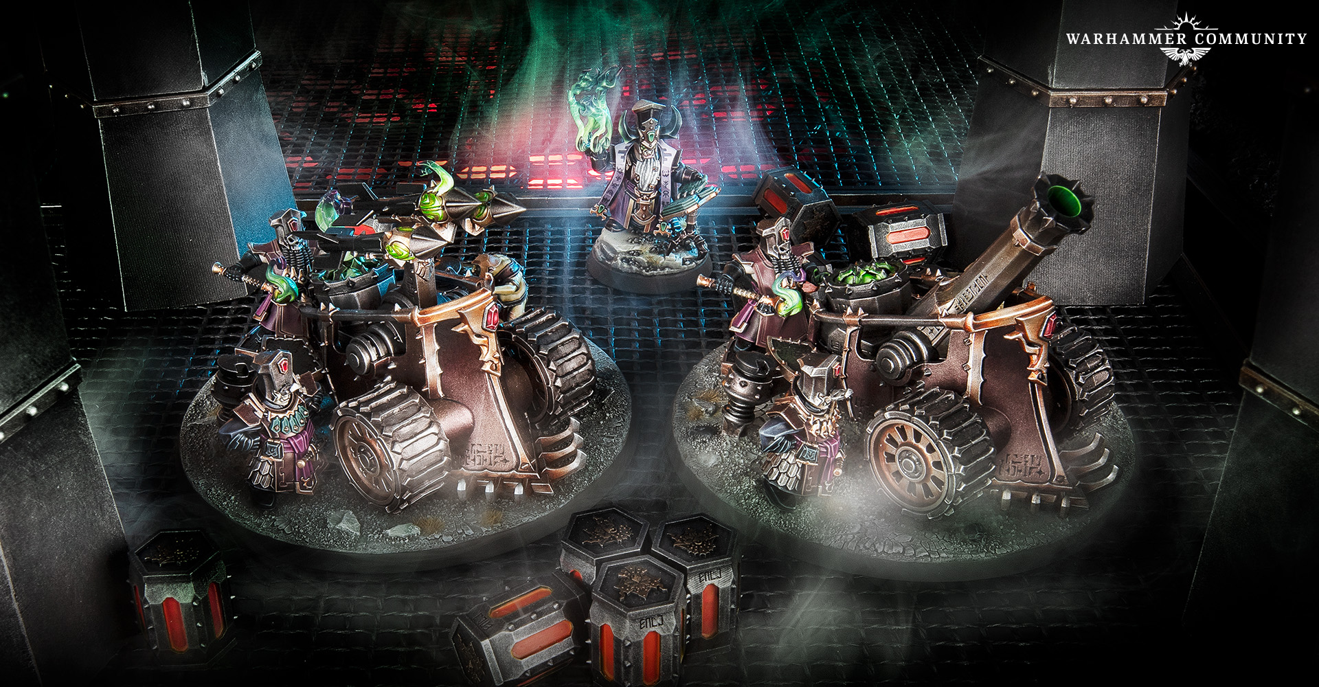 The first regiment for hire is The Curse-steel Battery, led by the Daemonsmith Gurok the Leveller. Living up to his name, he brings with him two expertly drilled artillery crews manning a Tormentor Bombard and a Deathshrieker Rocket Battery. With this pair of war machines he has blunted the fangs of many an enemy army, offering the first devastating salvo for free to his clients.