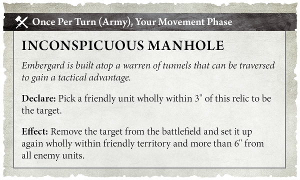 What happens if you open the Inconspicuous Manhole? Well, the tunnels under Embergard can be used to give you quite the tactical advantage, allowing you to pop back up where your enemy least expects it in friendly territory.