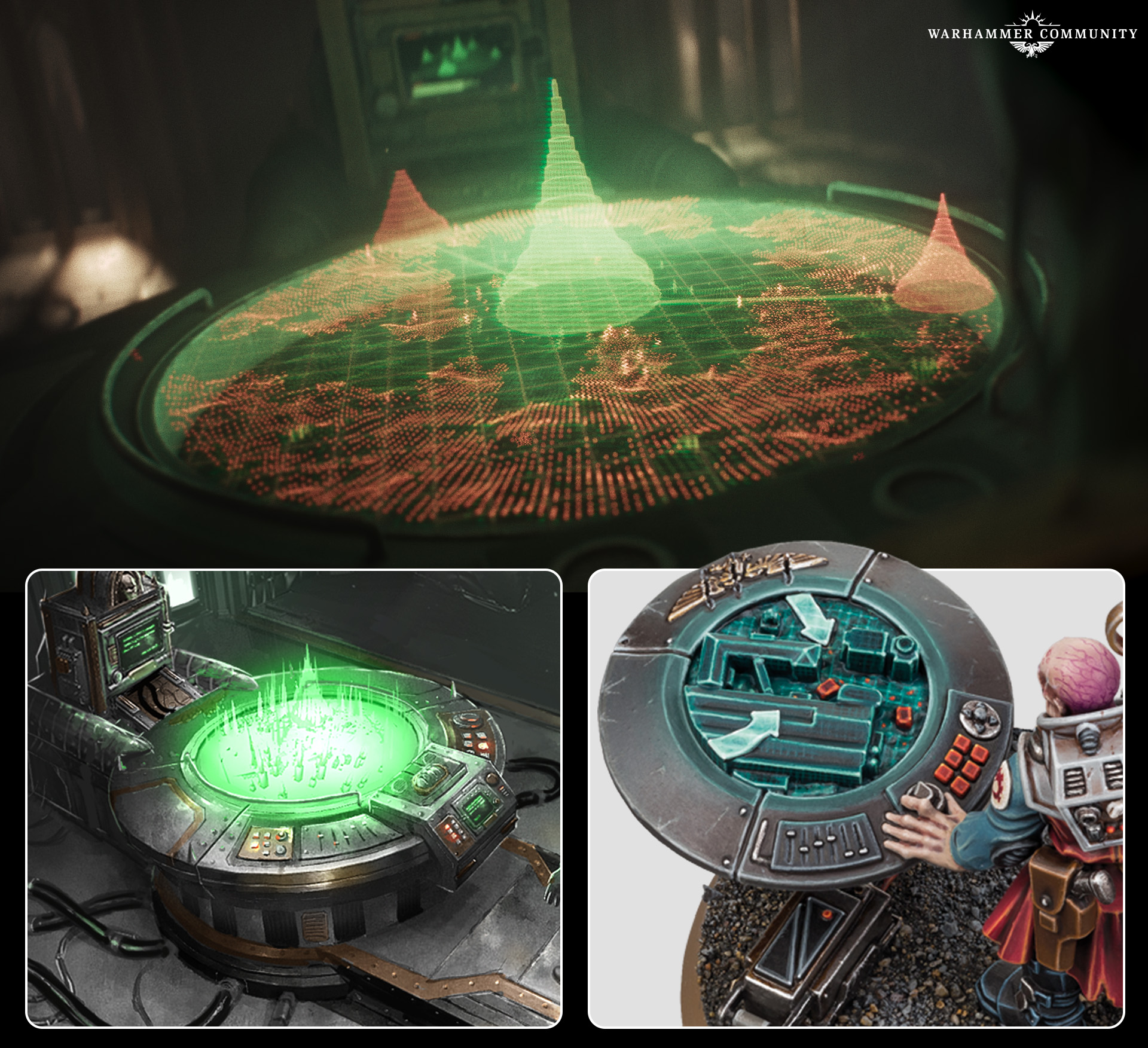 His hololith table and vox array command the centre of the room. A setup reminiscent of several Warhammer 40,000 miniatures, and even Roboute Guilliman’s media centre. You will be pleased to know that despite some minor damage, this setup still functions even after the events of the animation…