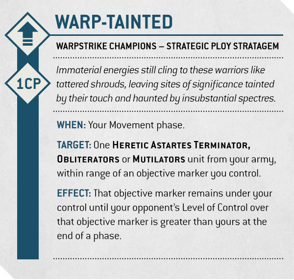TARGET: One HERETIC ASTARTES TERMINATOR, OBLITERATORS or MUTILATORS unit from your army, within range of an objective marker you control.