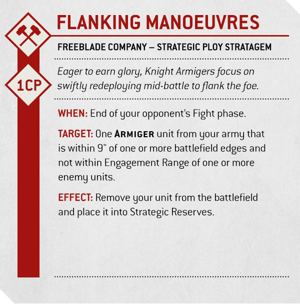 TARGET: One ARMIGER unit from your army that is within 9" of one or more battlefield edges and not within Engagement Range of one or more enemy units.