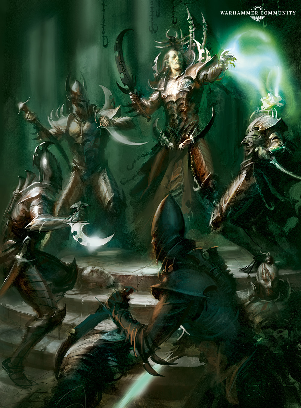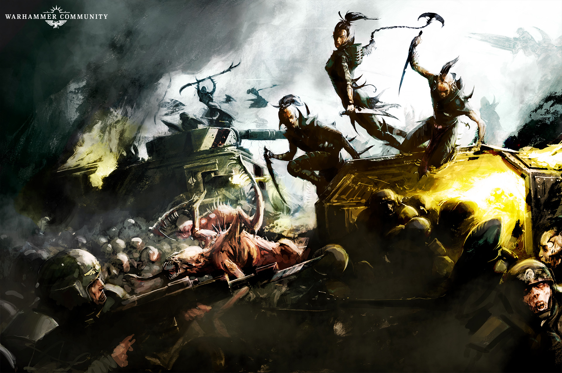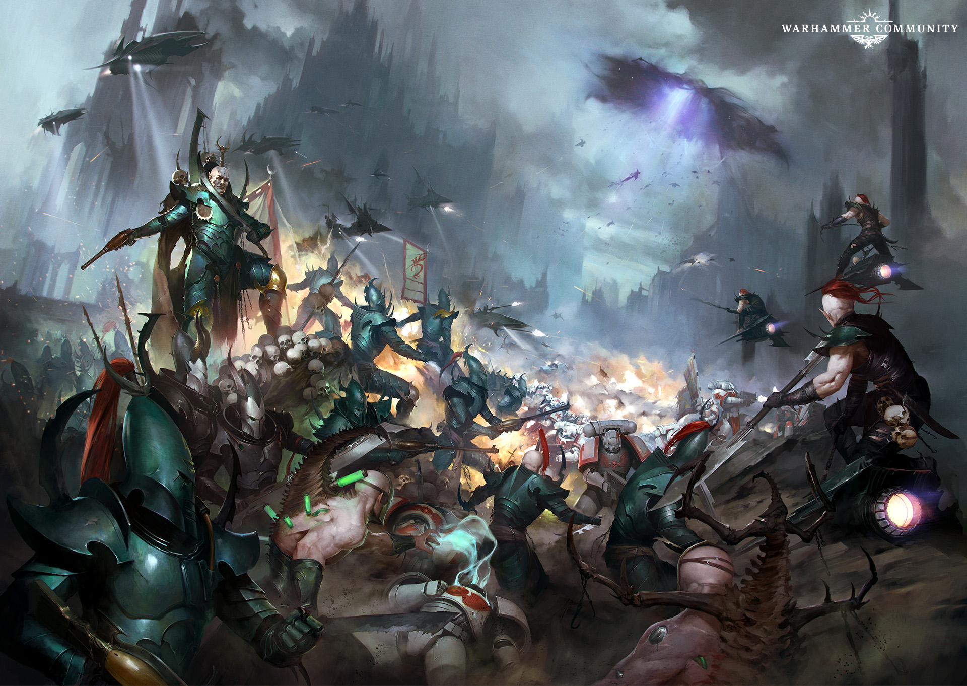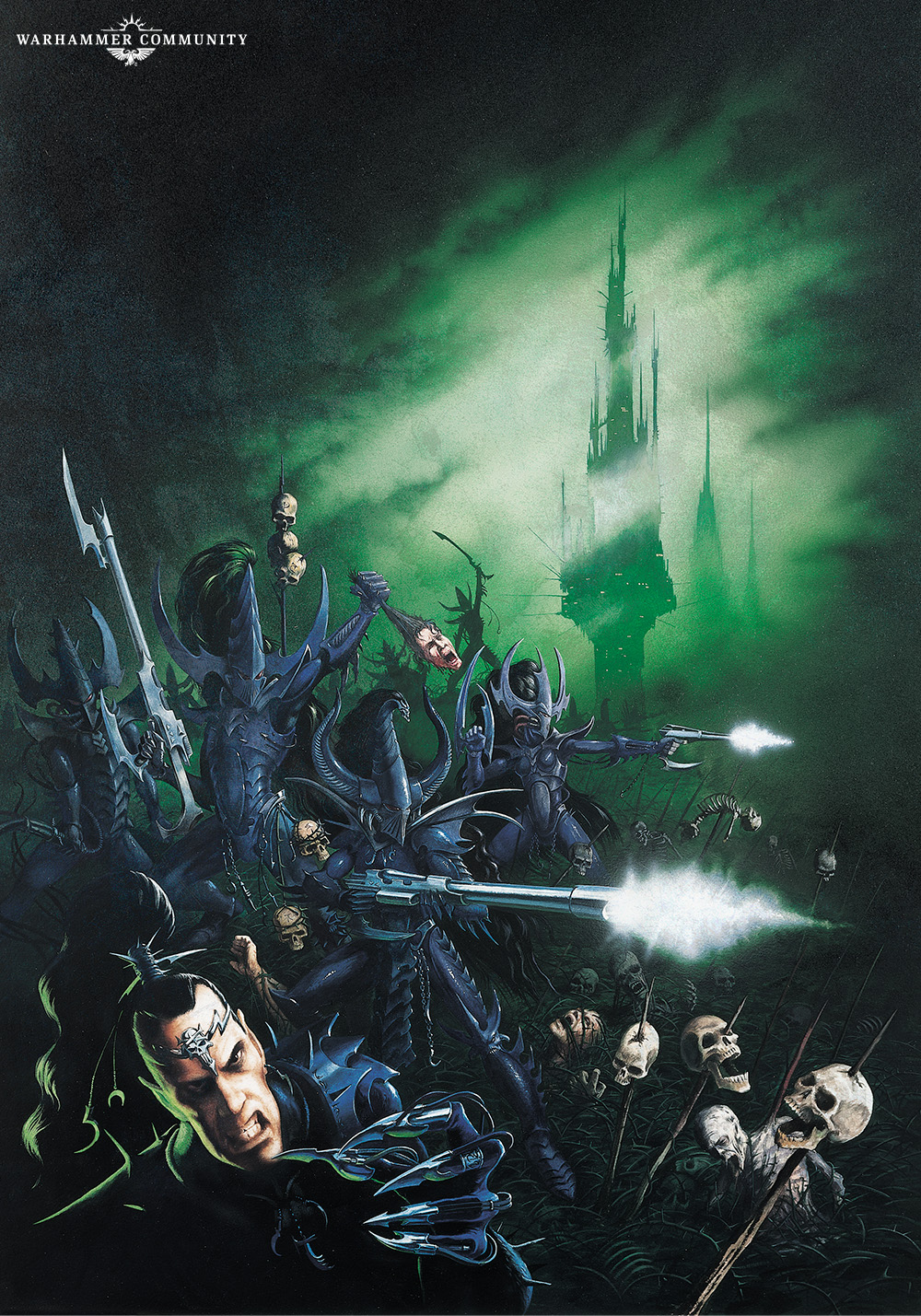The inhabitants of Commorragh, the cruel, murderous Drukhari, may think of themselves as artists with a blade. However, their gleaming armour, strange weapons, and flamboyant hairdos also make them excellent subject matter for Warhammer artists. To prove it, we’ve got a gallery of our favourite artwork from across the decades to show just how good they can look.