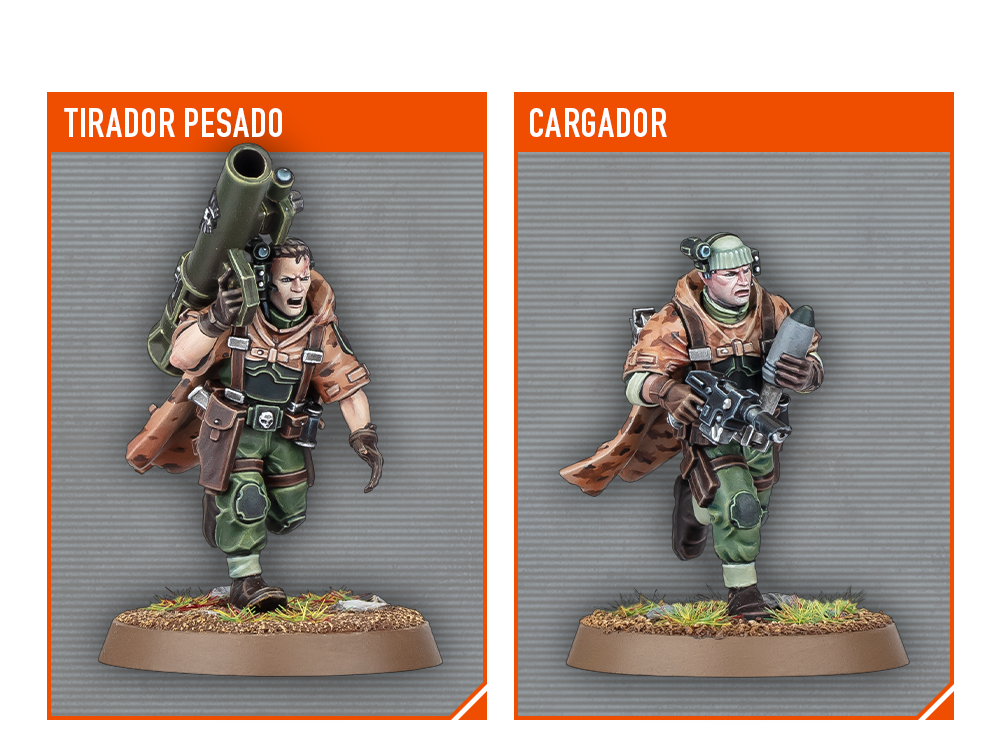 Los miembros de la Escuadra Espectro portan armadura ligera y capas de camuflaje que les permiten moverse a través de terreno accidentado sin ser detectados mientras emplean emboscadas y tácticas astutas para acabar con enemigos especialmente duros. Cualquier Guardia Imperial al uso podría pensar que las bengalas de señales solo sirven para iluminar el campo de batalla, por ejemplo, mientras que los Espectros saben que el destello cegador que emiten es una gran forma de aturdir a todos los enemigos de la sala.