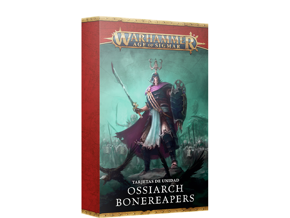Las legiones de los Osiarcas Cosechahuesos están animadas por las almas de miles de guerreros y maestros estrategas: ten siempre a mano sus reglas y habilidades con este conjunto de 28 tarjetas de unidad y 17 tarjetas de Punta de lanza. Además, puedes invocar las bendiciones de Nagash con un juego de 16 dados de los Osiarcas Cosechahuesos, fabricados en plástico color hueso con las muescas en tinta verde oscura y el icono de la facción en la cara del seis.