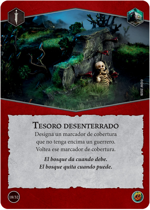 Designa un marcador de cobertura que no tenga encima un guerrero. Voltea ese marcador de cobertura. El bosque da cuando debe. El bosque quita cuando puede.