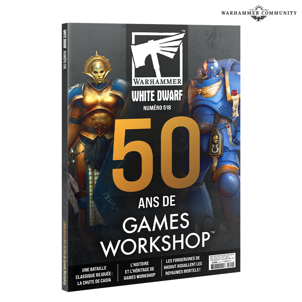 Célébrez les 50 ans de Games Workshop avec un numéro rempli de rétrospectives nostalgiques et de défis déjantés, avec notamment des articles sur l’histoire millénaire de l’humble bolter, et sur les règles de la course de chars pour Warhammer Age of Sigmar. Nous allons vous faire revivre des Rapports de Bataille classiques, avec d’anciennes boîtes de bases jouées selon les règles modernes, et nous allons revenir vers le présent avec la toute dernière faction à avoir rejoint les mondes de Warhammer : les Forgeruines de Hashut.