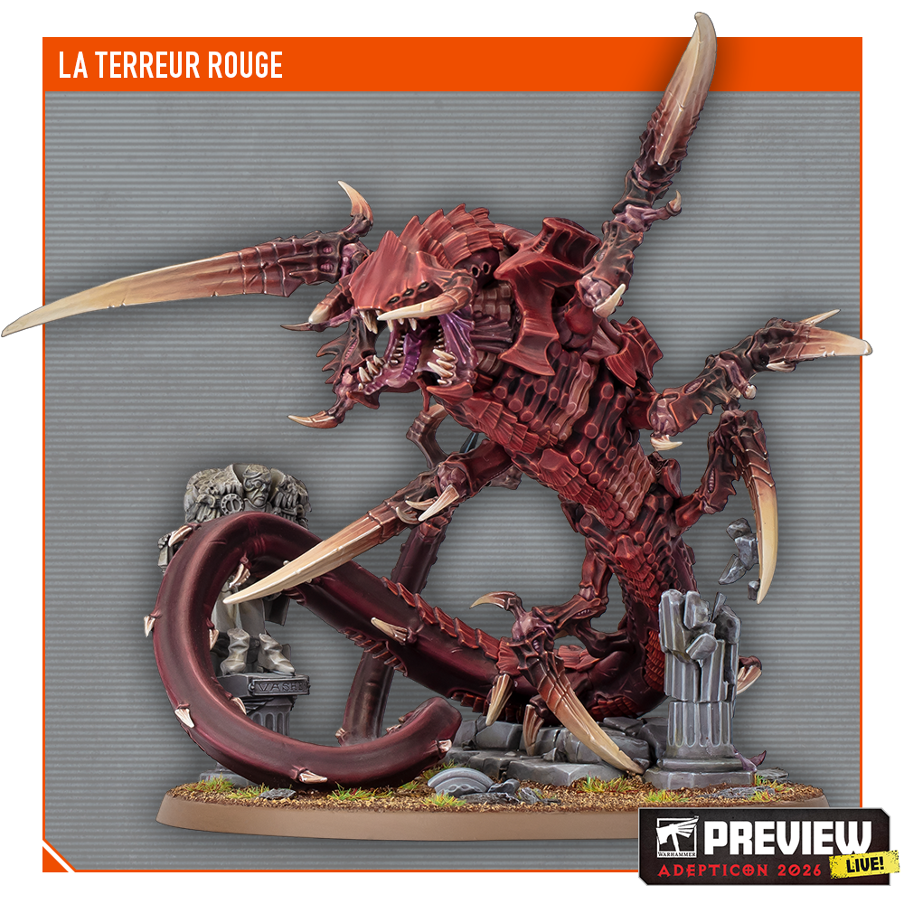 Les plus vieux commandants des Tyranides se rappelleront avec émotion de la Terreur Rouge des anciens codex Warhammer 40,000. La voilà de retour dans son tout premier kit individuel en plastique, prête à terroriser la galaxie de plus belle. Ce gigantesque monstre serpentin est capable de se régénérer en consommant de la biomasse, et il peut disparaître sous la killzone et y rôder, invisible, jusqu’à ce qu’il soit prêt à frapper et gober vos agents.